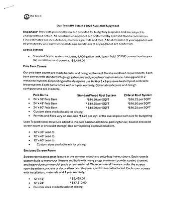 Our Town RV Estates is an upscale RV friendly community located in Wewahitchka, Florida just off Highway 71 in the sportsman's paradise of Gulf County. There are many lots for sale, check out the plat in the photos. Here you'll find a rural lifestyle at its best with fishing, hunting and boating minutes away. To top it off the white sandy beaches of the Forgotten Coast, including Mexico Beach, Cape San Blas and Port St. Joe are all just a short 25-minute drive. This one-of-a-kind turnkey community features average of 1/3 acre lot concrete driveway apron, water, metered electric with 50-amp and 30-amp RV hookups, septic system on this lot but others will need to add that on, paved road, storm water management system, underground utilities and personal locking mailboxes. Come vacation or live here full time without the hassle of searching for a place to stay, having to buy a lot, get permits, hire contractors and deal with infrastructure issues just to get the property usable. There is a Homeowners Association to ensure each owner's investment is protected and the community will be maintained to the highest of standards. Upgrades can be done by the owners at any time or by the buyer. Check out our Web Page for pricing and more Information.