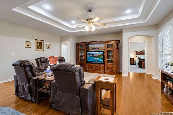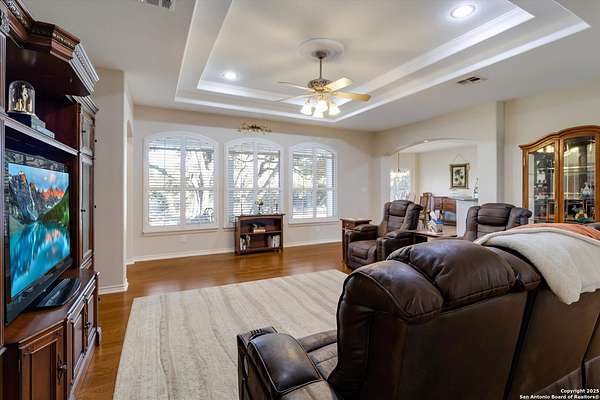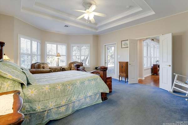 Welcome to 103 Mallard Drive, a beautiful 3-bedroom, 2-bath farmhouse nestled on 5.26 acres in the coveted River Mountain Ranch community-offering the best of Boerne ISD schools and peaceful country living. This charming home features a wrap-around porch perfect for morning coffee, evening sunsets, and relaxing under the Hill Country sky. Recent updates include a new asphalt driveway, fresh interior and exterior paint, an updated HVAC system, and elegant plantation shutters that enhance the home's light-filled living spaces and timeless farmhouse appeal. The property offers a private pond stocked with fish, and high-speed fiber internet-so you can enjoy wide-open space without sacrificing modern convenience. Inside, you'll find warm farmhouse character and an easy-flow layout ideal for gatherings and everyday comfort. Residents of River Mountain Ranch enjoy private Guadalupe River park access-perfect for kayaking, swimming, and riverside picnics-all within minutes of Boerne's historic Main Street. Experience the perfect blend of acreage, charm, and connectivity at 103 Mallard Drive-your Hill Country retreat awaits.
