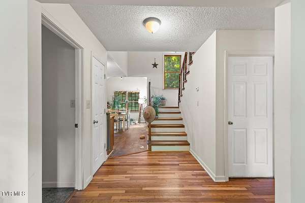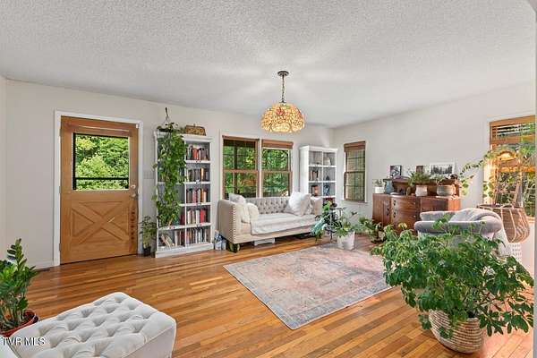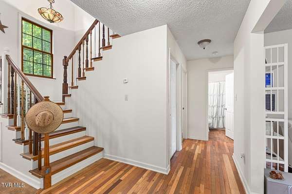 Searching for that beautiful gem in a park like setting? Follow the private drive past the fields where the indigo buntings, cardinals and red winged blackbirds nest and the wood frogs and deer play. This 5 acre oasis features 3 bedrooms and 2 full baths with a bonus office space and an additional exercise room recently added. Lovely hardwood floors, unfinished basement, with a garage. Updates include new water filtration system and tank, new lighting in the kitchen, new flooring in upstairs exercise room and a new dishwasher! New washer & dryer that can stay! Tranquility awaits in this one of a kind setting with stunning views from the covered front porch and back deck. Listen to the birds singing where the deer & turkey roam free; while the fireflies invoke their magical display. Numerous natural wildflowers plants and trees were added here to form a natural garden, all around this private home. Location Location! Rocky Fork State Park and all its glory is located within 7 miles. Yet this oasis is 3 minutes from I-26 Interstate and 25-30 from beautiful Asheville North Carolina and the surrounding NC townships. Also 15 minutes from Erwin TN and 30 minutes to Johnson City TN. Asheville & Neighboring NC this home sits just over the line into TN. One of a kind find for a commute into the cities. No storm damage from Helene and No State Taxes and only County Taxes!
