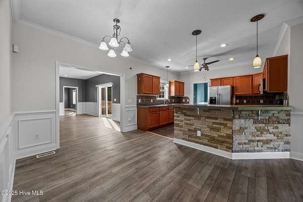 Welcome home to Meadowview Road on the outskirts of Jacksonville, where this absolute diamond in the rough is waiting for you! Nestled on over 1.75 acres, lined with trees, this abode boasts over 3,160 heated square feet. Not only is there one primary bedroom suite- there are TWO...and they're both downstairs! The first primary bedroom suite offers an en-suite bathroom with two separate vanity sinks, matching mirrors, & lighting fixtures. Enjoy the freshly-tiled walk-in shower and view to the back yard. The second primary bedroom suite also includes an en-suite bathroom with dual-vanity sinks and a large soaking tub to relax in after a long day. Also located downstairs are the third bedroom, third full bathroom, office room, and mud room/laundry room. Enjoy the cool Carolina nights by the den's fireplace, or appreciate game days and unwinding in the oversized family room/living room. Upstairs, you'll find the second bonus room...pause for effect...measuring 55 feet long by 15 feet wide! Separated into two sections, this room has a multitude of possibilities. Whether you're a seasoned chef or a beginner, the open-concept kitchen provides enough space for all kitchen activities and bar stools. Enjoy the summer festivities, BBQs, and gatherings on the back deck or relax in the home's saltwater pool. Located outside of city limits, this home is still drivable to schools, shopping, military bases, restaurants, and the hospital. Call today for your showing! NOTES: The home is pet-negotiable. NO CATS! All applicants over 18 MUST apply online or in person with a valid photo ID (besides Military ID) and proof of income. Renter's insurance is required prior to move-in. Security deposit, pet fees, and $500 cleaning deposit required prior to move-in. There is a one-time pet fee of $300/pet required up front or $500/pet for animals less than one year old. No smoking permitted in the home! Call listing office for application status and to see if there are pending applications.