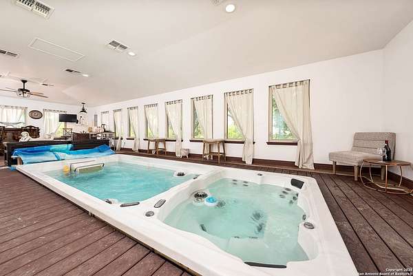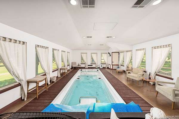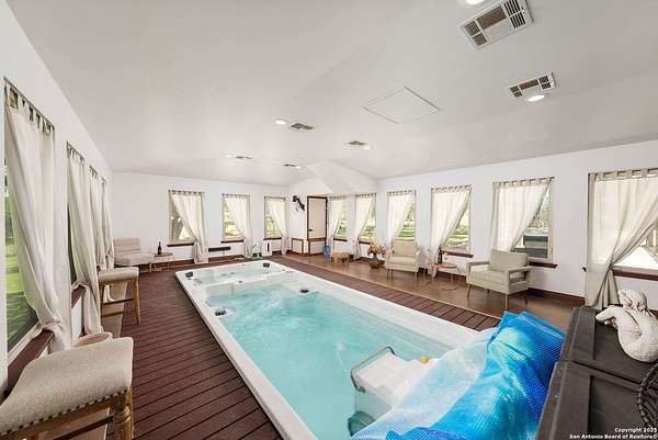 This beautiful one-story ranch-style home sits on 5.03 acres with controlled access, offering privacy and a serene country atmosphere. Featuring 4 bedrooms and 2 full and 2 half baths, the property includes a spacious garage apartment (528 sq.ft. - 22 X 24) with its own half bath-perfect for guests or additional living space. One of the standout features is the heated in-ground pool with an adjoining spa, all fully enclosed indoors (1060 sq.ft. - 53 X 20) for year-round enjoyment and relaxation. Surrounded by mature trees that create a park-like setting and plenty of shade in the backyard, the property feels like a private retreat. Additional highlights include a ranch fence, an RV connection in the storage area, and three separate meters (two utility bills). Combining functional living spaces with unique amenities, this home offers comfort and versatility in a picturesque setting.