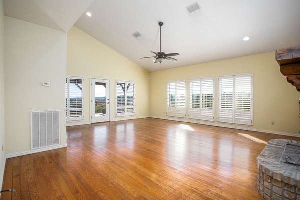 Est $3,567/moThe view that overlooks the lake on a 1000 acre ranch greets you every morning and evening. Entering through an enclosed patio, the very large executive bedroom is on the first level. With two walk in closets, a custom bath and an adjoining room that has been a dressing room or office, it offers a very expansive retreat. Natural light floods the high ceiling great room through arched windows. Hardwood floors and the fireplace complete a very comfortable feel for a large gathering. Both of the guest bedrooms have walk in closets along with glass patio doors that allow access to a veranda. This is the home that feels like it's out in the country but only minutes from town and shopping.
