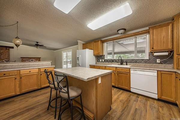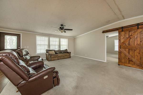Located on 6 beautiful areas in Romance. You will drive up the long drive way to a stunning covered front & back porch area. Enjoy entertaining and watching the deer enter the yard. Multiple storage areas located on the exterior and they all have electricity. 4 spacious bedrooms(2 bedrooms with jack-in-jill bath), 3 full baths. Large living room, dining room and breakfast bar. Large pantry and tons of storage. In the primary bedroom which is separate from the other bedrooms features a gorgeous barn door, large bedroom, soaking tub, stand up shower and linen closet. Refrigerator will convey. New paint throughout. Carpets recently cleaned. Metal roof 2020, Carport on rear of home for added convenience. This property also has a storm shelter and generator. Call today for you private showing. Property to be sold as is.