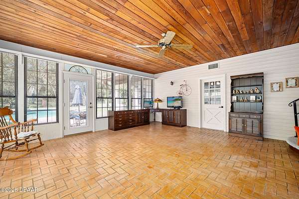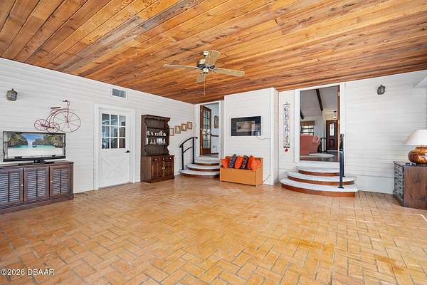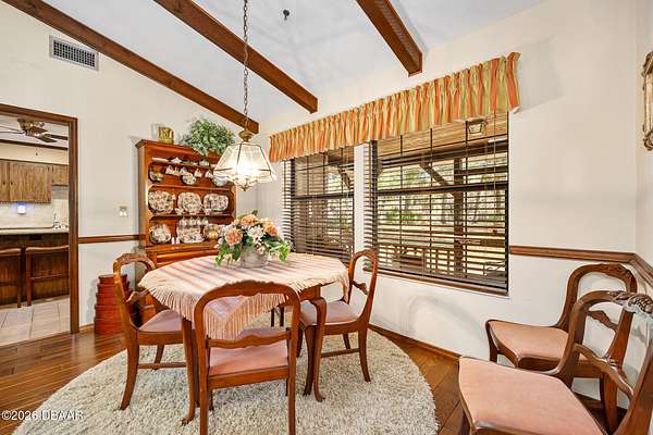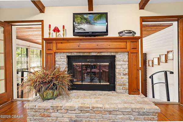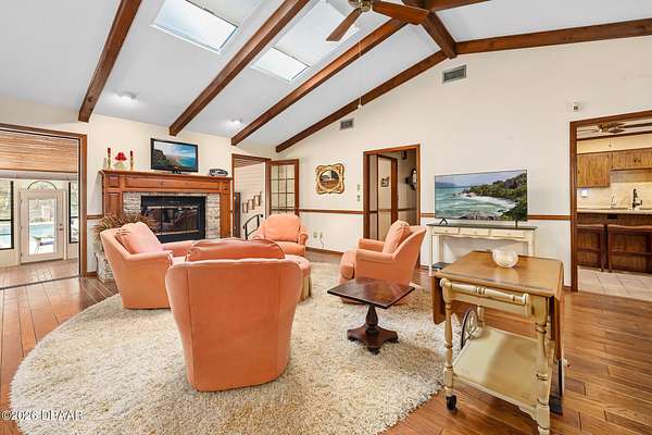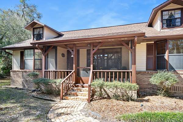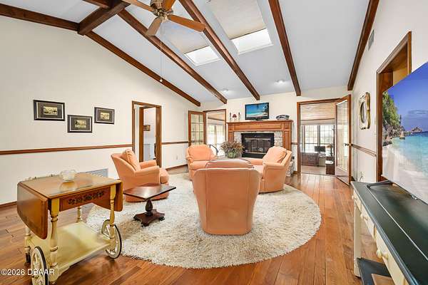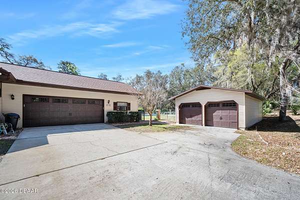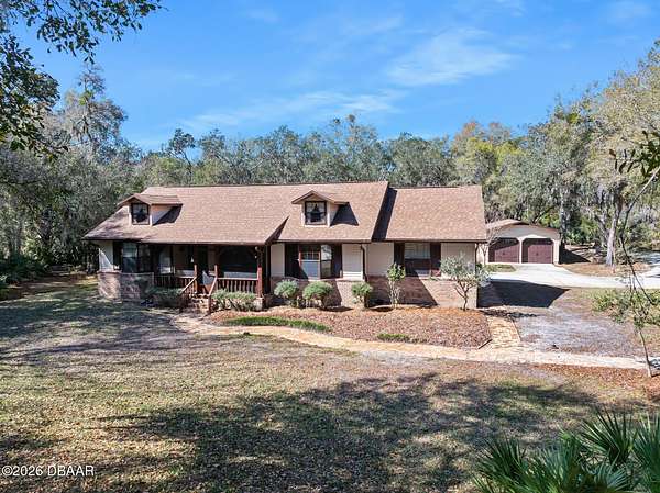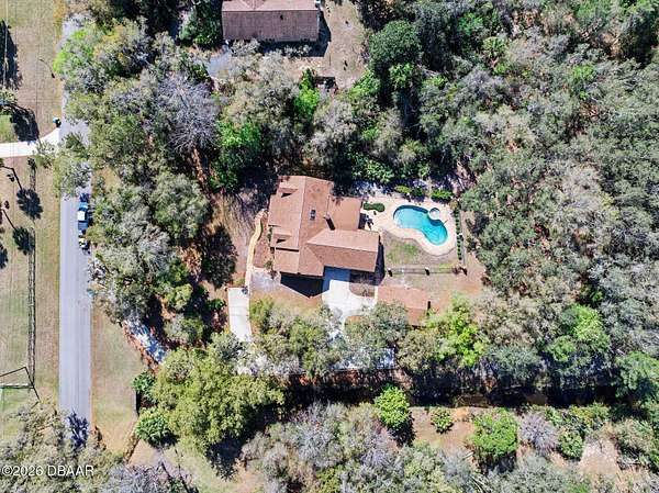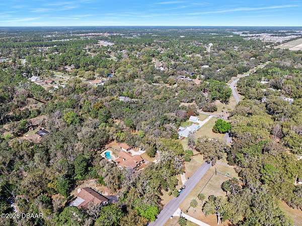 A rare opportunity to own a 1.6-acre estate property in the heart of Ormond Beach. Nestled beneath a breathtaking canopy of majestic live oak trees, just off the scenic highway, this property offers the charm and tranquility of country-style living while being just minutes from the conveniences of town, including shopping, dining, parks, the intracoastal waterway and the beautiful beaches of the Atlantic Ocean. The owner replaced the ENTIRE SEPTIC SYSTEM in 2021 and the ROOF in 2022. Inside, the home features beautiful hardwood floors, soaring vaulted ceilings, and skylights that fill the living spaces with natural light and create an open, airy feel throughout. The updated eat-in kitchen offers the perfect blend of function and style, with ample cabinetry, double ovens, and space for casual dining--ideal for everyday living as well as gathering with family and friends. A private in-law suite provides flexible living space that is ideal for extended family, visiting guests, or multi-generational living offering comfort and privacy while still being connected. Here, the outdoor living is highlighted by a beautiful free-form swimming pool with an attached spa, creating a backyard oasis, perfect for relaxing, entertaining, or enjoying Florida's year-round sunshine. With plenty of room to roam, the property offers endless possibilities for gardening, recreation, or simply enjoying the rare luxury of space and privacy in such a convenient location. If you've been searching for acreage in Ormond Beach with a sparkling pool, in-law accommodations, and a private estate setting, 103 Oak Lane offers the ideal opportunity to enjoy the best of Florida living. Easy to see and a pleasure to show!