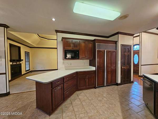 - Attic Storage, Carpeted Floors, Central Vacuum, Double Vanity, Fireplace, Gas Logs, Ice Maker, Pantry, Tray Ceiling(s), Walk-In Closet(s), Whirlpool Tub, w/ Connection