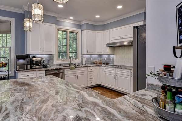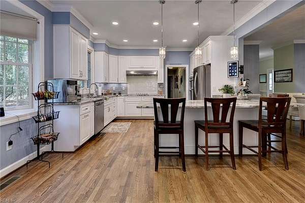 This lovingly cared-for Cape Cod, nestled on 2+ wooded acres in Yorktown is a stunning home featuring a thoughtfully-planned gourmet kitchen (inc. a reverse osmosis water filtration system) that is sure to be the center of your entertaining! So many bonuses...2 fireplaces (1 wood,1 gas), sec. system, and encapsulated crawl with dehumidifier. You'll find the primary BR with ensuite and 2 others upstairs, a BR downstairs that can be used as a home office, and a large BR with full bath over the garage, perfect for guests or teens! Beautiful hardwood floors throughout most of the living space, including a huge open dining room off of the kitchen with room to seat a large gathering! A charming sunroom off of the cozy family room provides a comfortable retreat to sip your coffee and enjoy each season! Storage and parking galore with a 2-car attached + 1-car detached garage plus additional shed. Home warranty transfers, good until Mar/27. Pride of ownership shows throughout...come see!