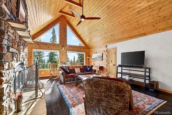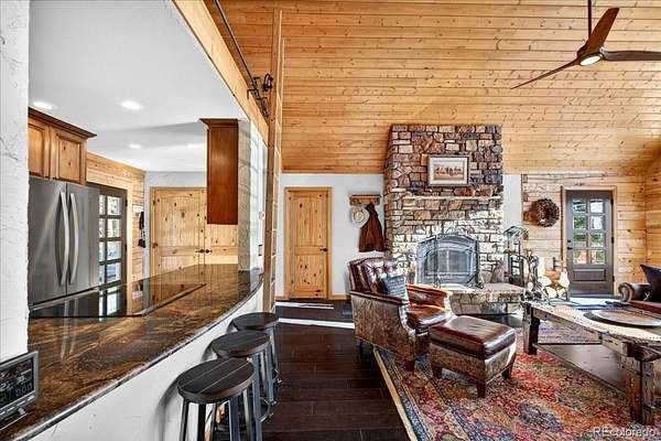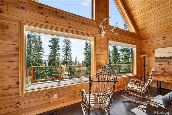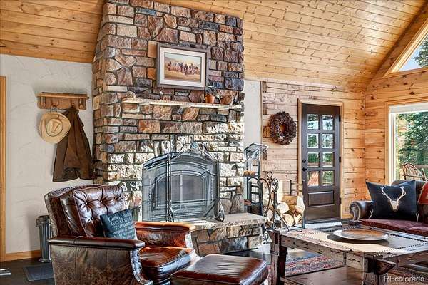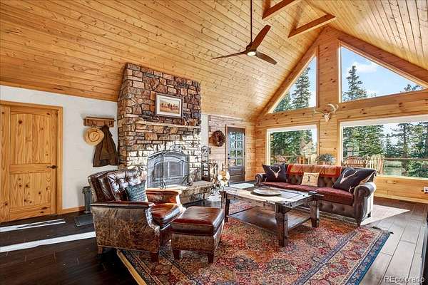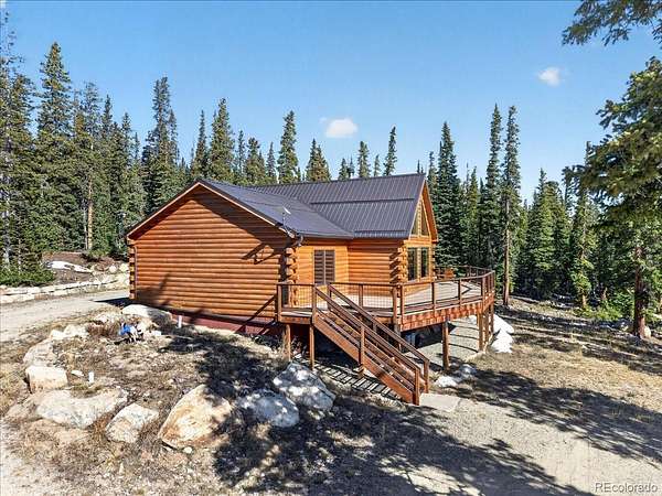 Surrounded by towering pines in scenic Park County, this custom log home in Fairplay, Colorado blends mountain charm with modern updates—just 26 miles from Breckenridge. The open-concept living space features a dramatic floor-to-ceiling rock, wood-burning fireplace, designer wood flooring, and abundant natural light. The kitchen offers updated appliances, including an induction cooktop and a functional layout ideal for everyday living and entertaining. Upstairs, the loft provides a cozy retreat with serene forest views, while the primary suite includes a custom slate bath and walk-in closet. The guest bath features a classic clawfoot tub, adding to the home’s character. Recent improvements include a new metal roof, new low-maintenance composite decking, updated doors and windows, upgraded furnace, and tankless water heater. The widened and extended driveway enhances access, StarLink internet, and fire mitigation has been completed for added safety. Enjoy the expansive deck, perfect for relaxing, entertaining, and taking in the surrounding scenery and wildlife. Ideal as a full-time residence, mountain getaway, or investment property, with easy access to world class skiing, hiking, gold medal fishing, and all that Fairplay and nearby Breckenridge have to offer.