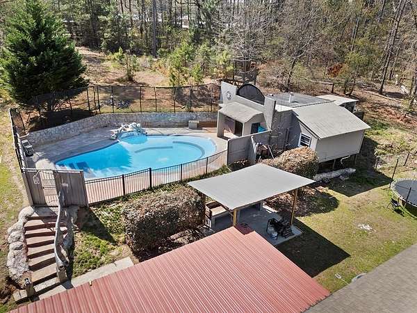 Welcome to this beautiful single-level ranch home situated on 2.11 acres, offering space, comfort, and resort-style outdoor living. A circular driveway welcomes you to the property and leads to an impressive entrance with an expansive foyer featuring multiple closets for convenient storage. Elegant pillars guide you into the massive living room with a cozy wood-burning fireplace, which flows seamlessly into the formal dining room—perfect for entertaining. The spacious kitchen is designed for both everyday living and hosting, featuring an island, granite countertops, abundant cabinetry, and a huge pantry for extra storage. This home offers 5 bedrooms and 3.5 baths, including two ensuite bedrooms. The main suite is generously sized and includes a massive walk-in closet and a luxurious bath with a soaking tub and separate shower. The second ensuite also features a large private bath and walk-in closet. The additional three bedrooms are all oversized with large closets, providing plenty of room for family, guests, or office space. Two sets of patio doors lead to a fenced area that is perfect for children and pets. Beautiful stone steps with detailed stone craftsmanship guide you to your private outdoor retreat. The free-form inground swimming pool with cascading waterfall offers a relaxing, organic aesthetic appeal creating a resort-like setting. Complete with a pool house featuring a fireplace, changing room, and half bath — making it ideal for relaxing or entertaining year-round. This one-of-a-kind property combines space, functionality, and luxury outdoor living all in a peaceful setting. Call to schedule your private tour today!
