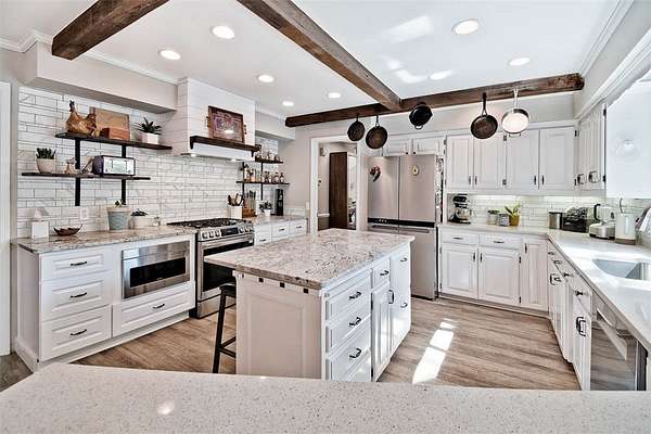 - Built In Oven, Built In Range, Dishwasher, Disposal, Energy Star Qualified Appliances, Gas Range, Gas Water Heater, Microwave, Plumbed For Ice Maker, Range Hood, Refrigerator, Self Cleaning Oven