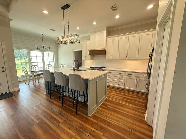 This magnificent 4 Bedroom, 2 1/2 Bathroom, 2219 SqFt home is situated on 2.81 Acres and was built in 2021. It features LVP flooring throughout, open kitchen with an island, abundance of cabinets for storage. Walk-in pantry makes for easy organizing. Open living room area with self venting gas fireplace, Coffered ceilings, plentiful windows to let natural light in. Large Primary bedroom has trey ceilings, attached primary bathroom with walk in shower, double vanities, Soaker tub, private toilet area, and a Walk in closet. Guest bathroom has double vanities, private toilet area. Laundry room is spacious and has a mud sink along with cabinets for storage. Large attached 3 Car garage. Sit out on the back porch with a cup of coffee and enjoy overlooking the beautiful view of the stocked pond. The list of features of this home just keeps on going! Don't miss out, Give your favorite Realtor a call today to schedule a viewing. Please Note: A contingency on the buyer selling their home would be entertained as the seller's need to stay in the home until they find a place to Rent/Buy. The playhouse isn't included. With an agreed upon price, the playhouse could be included in the sale.