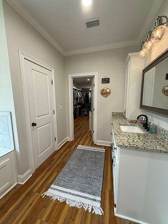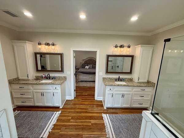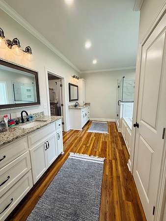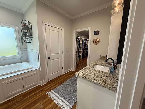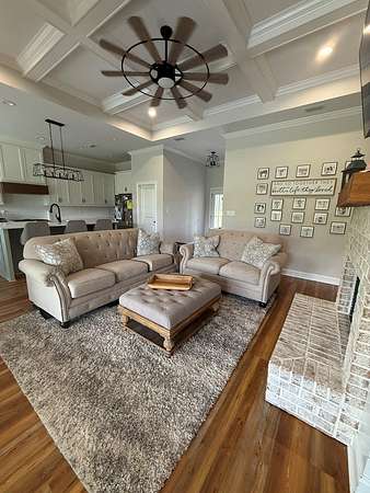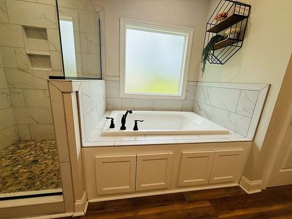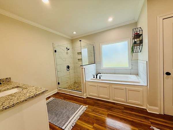 - Blinds, Coffered, Crown Moldings, Double Vanities, Fireplace, Hard Surface Countertops, Laundry Room, Light & Airy, Luxury Shower, Master Bath, Recessed Lighting, Separate Shower, Sheetrock, Shiplap, Sink, Trey, Tub/Shower Combo, Walk-In Closets