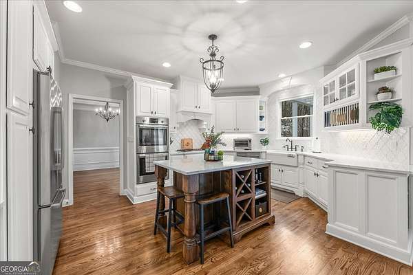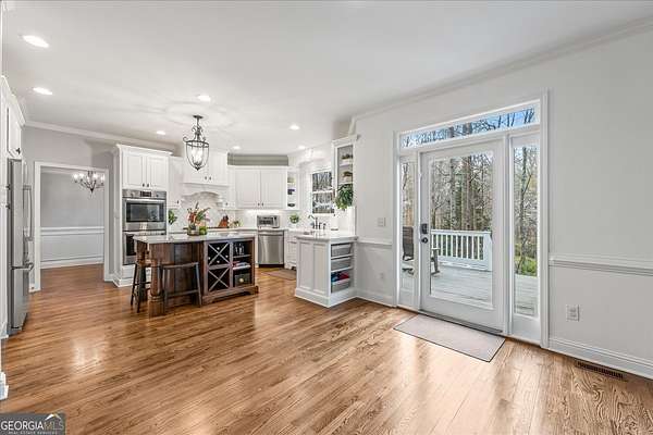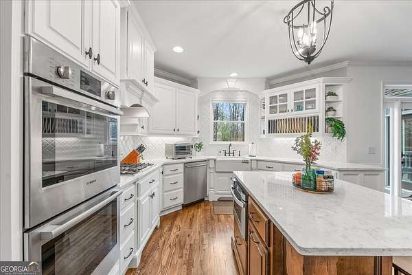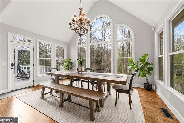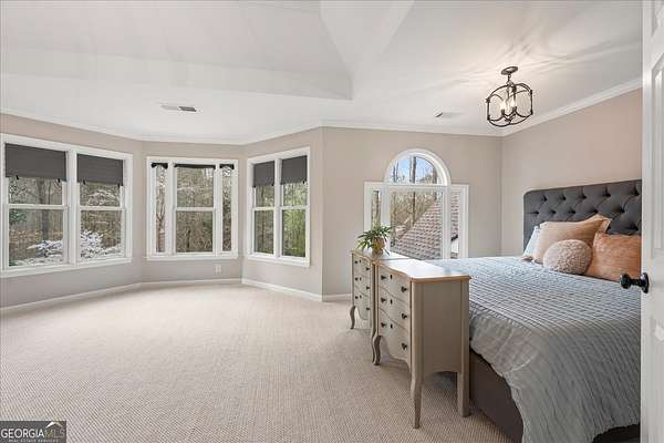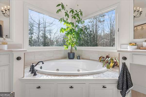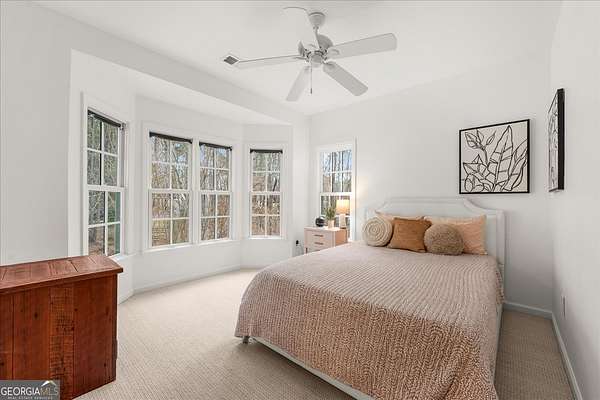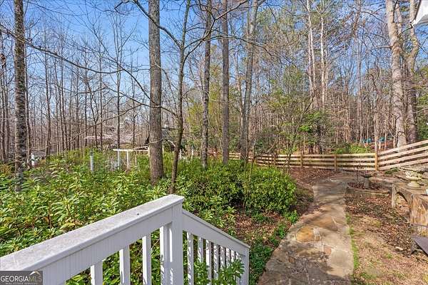 Tucked away on two acres of mature trees and beautifully tended landscaping, this six bedroom, five bathroom home offers a warm embrace the moment you step onto the property. The serene environment combines traditional architecture with modern updates, creating a home that invites relaxed living. As you enter through the front door, you'll notice the restored hardwood floors and new windows that add both charm and warmth to the home. Freshly painted walls in calming colors set the mood for family gatherings or quiet moments of reflection. The newly updated kitchen features modern Bosch appliances, ideal for weekday dinners or weekend culinary adventures. The main level also includes a guest bedroom and full bath, offering both comfort and privacy for your visitors. Upstairs find your retreat in the spacious owner's suite, complete with an en-suite bathroom designed for unwinding. The new carpeting in all upper level bedrooms adds a plush, cozy touch. Three additional bedrooms and two full baths provide for ample space for family or guests, making everyone feel right at home. The three-car garage offers more than just space for vehicles; it's also perfect for extra storage or hobby space and newly reconfigured for electric vehicle charging all supported by brand new updated circuits and panel boxes. The side entry adds a touch of elegance without overstating. The real gem of this property is its tranquil newly fenced-in backyard with an outdoor fire pit set the state for blissful evenings and peaceful days at the same time. Enjoy the best of both worlds with nearby trendy restaurants, shopping, and highly rated schools. Just a short drive to Milton, Canton and Cumming, this location offers convenience without compromising tranquility.