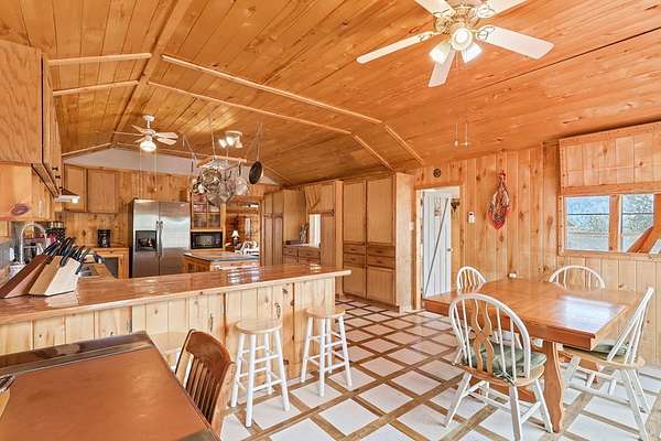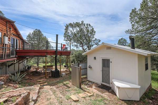 Beautifully appointed 2 BR/2 BA cabin in the woods with elevated deck for enjoying mountain views, covered flagstone patio and cooking area, covered deck with spa and attached sauna! And that's not all! Enjoy the detached guest casita, workshop, storage buildings, covered horse stalls, covered parking, and gated driveway. All situated on 12+ tree covered acres surrounded by stunning mountain views. Recently updated and ready for your relaxation, adventures, and enjoyment!