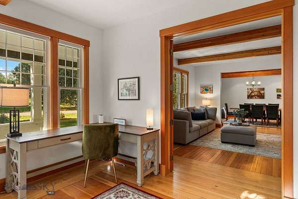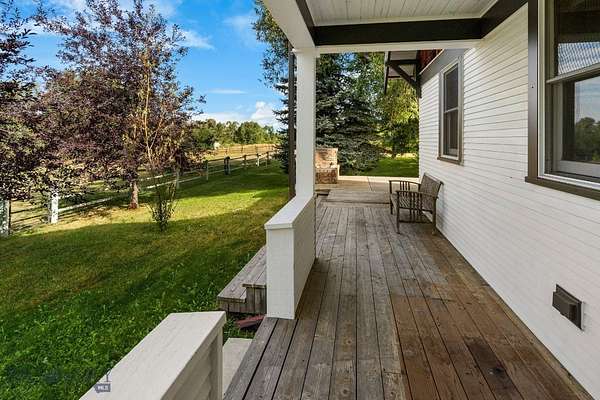 Historic Charm on ~2 Acres Near the Gallatin River. This beautifully preserved & thoughtfully updated 1910 Craftsman style farmhouse is set on nearly 2 sprawling acres, with 3 bedrooms, 3 bathrooms, a chef's kitchen, multiple living areas, & a warm, inviting interior, blending historic charm, character, & modern comfort-all just 2 blocks from the Gallatin River & moments from local favorites like Stacey's Old Faithful Bar & Steakhouse & The Westerner (coined as Montana's only real honky-tonk). Outdoor enthusiasts will appreciate the property's unbeatable proximity to Yellowstone National Park & endless recreation-fly fishing, rafting, hiking, & wildlife viewing only minutes away. Bozeman's amenities, dining, & airport access are just a short drive, while world-class skiing, mountain biking, & alpine adventure in Big Sky lie conveniently to the South. No HOA & no known zoning or covenants offer flexibility & freedom. Whether you're dreaming of a personal residence, retreat property, quaint equestrian setup, or income-producing investment...options are wide open. The acreage provides space for future improvements, gardens, or grazing (horses are allowed, pasture fenced & backs to a conservation easement). The home has been beautifully renovated with wood finishes & an oversized kitchen boasting a Thermador gas range & hood, double wall oven, free standing fridge, free standing freezer, & a cozy fireplace. The home's main level offers an addt'l kitchenette/wet bar area, office/den, living room & extra sitting room, a spacious, upper-level primary suite w/ fireplace & private balcony, 2 guest bedrooms provide cozy retreats; the one ensuite guest bedroom is currently outfitted as an oversized bedroom/bunk room. The basement provides an expansive second living area/family room or flex/rec/storage space. This property's amazing setting makes you feel like you are in the country with great outdoor living space (a massive back deck with outdoor fireplace, hot tub and private, covered front, side & balcony porches), mature trees & room to roam. Currently, the home has successfully operated as a nightly rental income property & is being offered fully furnished, creating a turnkey opportunity for investors or those seeking a ready-to-enjoy Montana getaway. A unique blend of history, acreage, & access to all the best of southwest Montana-103 Tracy Street is a rare offering in the highly coveted Gallatin Gateway community; this property is truly a rare find.
