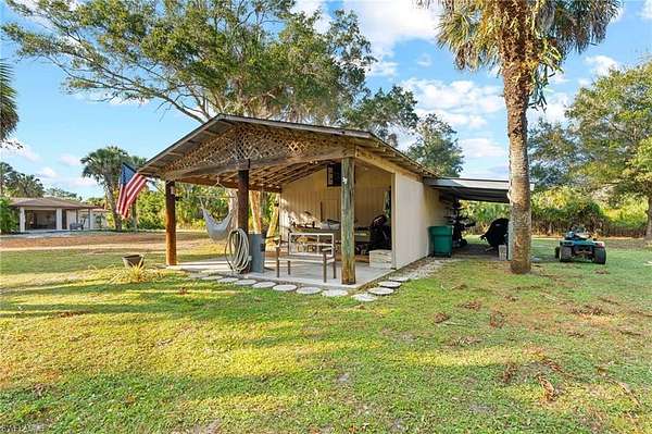 Experience the privacy and space of this 2.27-acre Golden Gate Estates home for sale, set deep within the lot and free from HOA restrictions. This 3-bedroom, 2-bath Naples FL property features a split-bedroom layout and a series of recent updates, including a 2023 roof, 2021 A/C, 2023 well pump, new interior and exterior paint, upgraded blinds, new ceiling fans, new kitchen sink, new refrigerator and stove, blackout shades in the primary bedroom, a full home repipe, and a new smart thermostat. The fully cleared parcel includes no wetlands, a rock driveway, front and rear fencing, and a screened lanai with space planned for a future pool. Additional structures include a 46' x 20' pole barn with electricity, plumbing, 220V power, shelving, and a built-in workbench, plus a 26' x 20' concrete block carport and covered parking. Exterior features also include two Ring cameras and a Ring doorbell. With usable acreage, multiple outbuildings, and modern upgrades, this Golden Gate Estates property provides flexibility for equipment, recreational vehicles, storage, or future expansion-while remaining close to Naples amenities, shopping, dining, and major roadways.