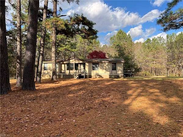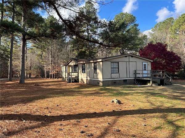 Est $587/moQuiet country living on a private road. This 4.38 ac lot is absolutely beautiful with a mix of mature pines and open land. The 1400 sq. ft doublewide mobile home on property needs total renovation. Deep well, Septic system and Electrical power is in place. The possibilities for this lot are endless. Value is in the land and utilities that are in place.