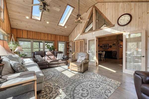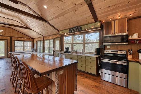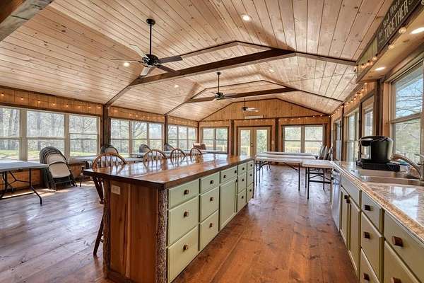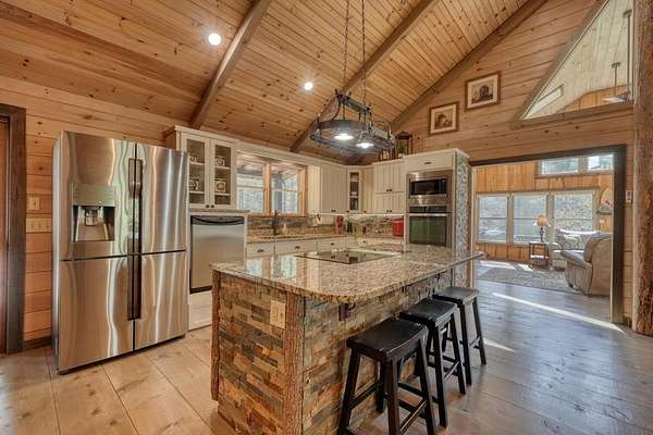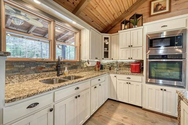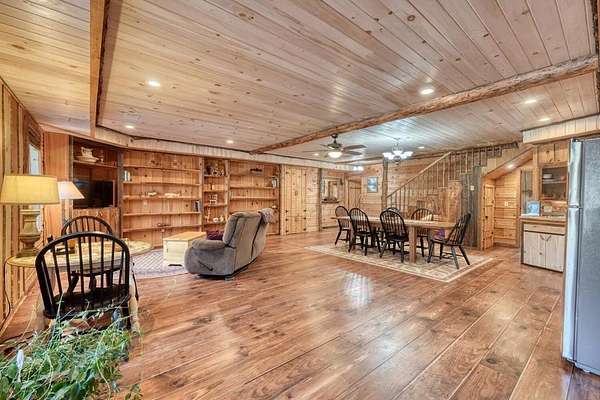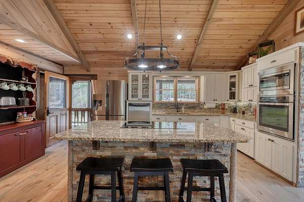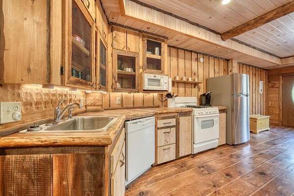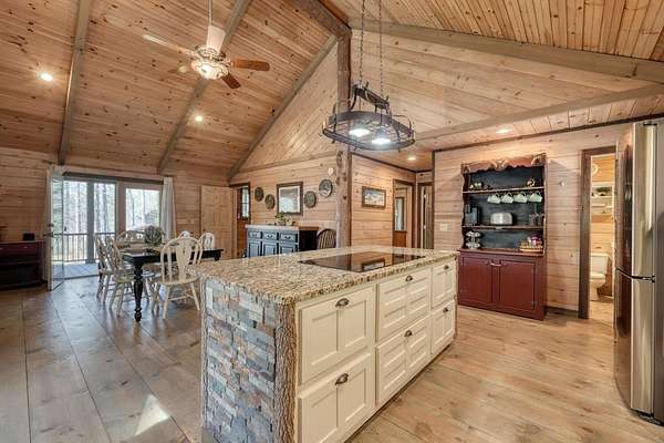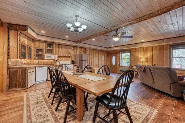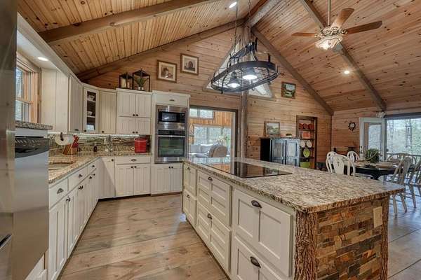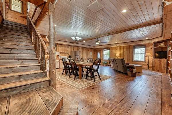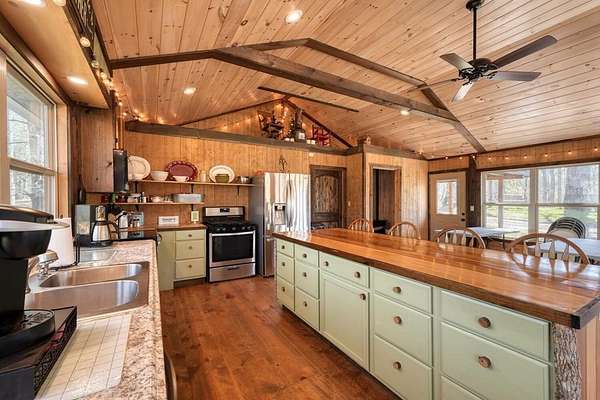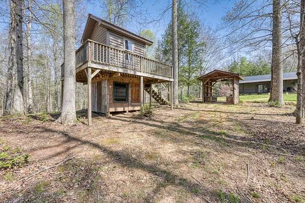 Bursting with Rustic Charm, this 3100sf home is situated on picturesque land with 15.37 Acres. The custom built main house has 3BR/3.5 bath + Guest/party house and even a tree house! The main home has 2 FULL Kitchens, Pella windows, 2 Spacious living areas with farmhouse kitchen & 3-1/2 baths, a New HVAC, private well & generator hookup. Can easily make lower level apartment or mother-in-law suite with separate entrance. Grow your own food with established pear, peach, muscadines, blueberries, concord grapes and a ginseng patch in addition to 2 vegetable gardens. The guest/party house is 960sf and has full kitchen w/ 2 ranges, pantry and 1/2 bath. This space has so many possibilities - can use as guest house, homeschool area, for cooking classes or catering events, church or gathering spot, a hair studio, karate venue, business office, farm stand or whatever your need! Currently has Conservation tax status for VERY LOW taxes! There is an 3 bay open shed on property, 2 firepits, garden area. Located just 15 min to Blue Ridge or McCaysville. It's time to move to the mountains and THIS is the PERFECT property!