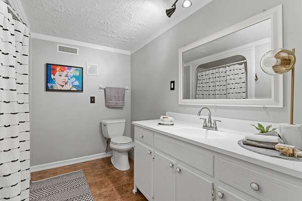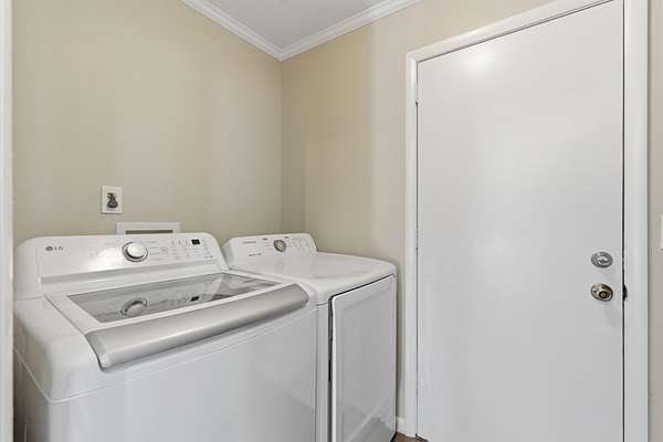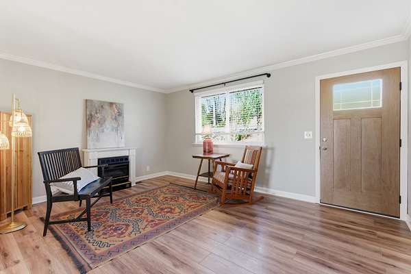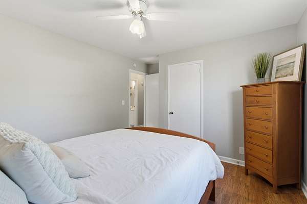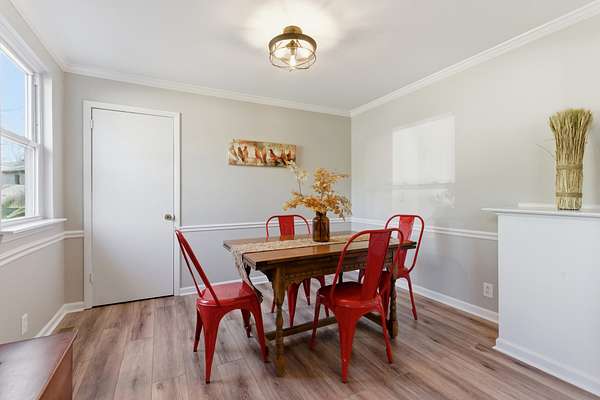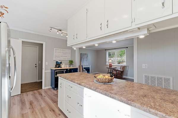 The home has been thoughtfully updated with fresh paint and durable LVP flooring throughout. Natural light fills the spacious interior, which features two separate living areas, a formal dining room, and an open kitchen with bar seating. The oversized primary suite is a true highlight, complete with direct access to a screened-in deck—perfect for morning coffee or evening unwinding.