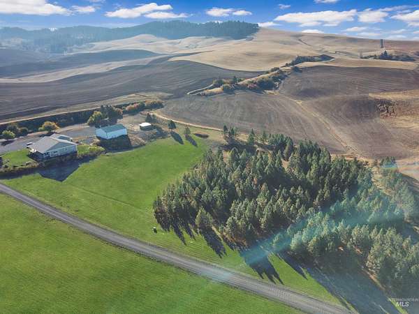 Stunning views of the Palouse and Kamiak Butte from your wrap-around porch on a gorgeous single-level home surrounded by your own private acreage. Just 10 minutes from Moscow, this 3-bed, 2-bath home features highly efficient insulated concrete form construction and includes additional office and living spaces, as well as a generous mudroom just off the 3-car garage. Open concept living off the custom kitchen with windows highlighting the 360-degree views. The shop features an RV-sized door, new wood stove, additional office or workshop space, and loft. Established yard features fenced area and mini barn for goats or other animals, planter boxes and playset already in place to complement the pasture and wooded areas on this parcel.