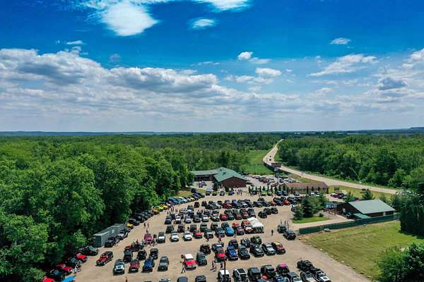 The property features approximately 13,000 sq. ft. of developed space on over 7.85 acres across two parcels, with the current owner having considered the potential purchase of an additional 50 adjacent acres to expand the existing off road trail.