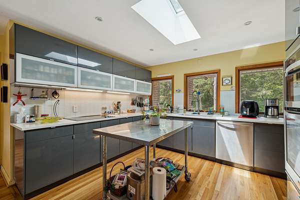 - Built-In Electric Oven, Cooktop, Dishwasher, Disposal, Dryer, Microwave, Refrigerator, Stainless Steel Appliance(s), Washer