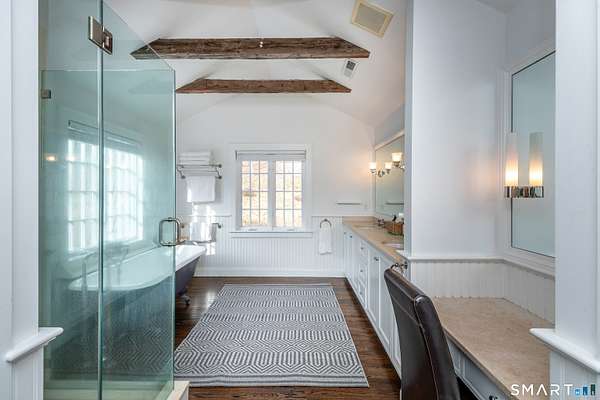 Good Hope Estate. Transport yourself to this stunning European-style home with all the bells and whistles! The well thought out 4 bedroom, 4.5 bath home with seasonal views sits on 18 acres of privacy and nature! The eat-in kitchen is a chef's dream complete with Sub-Zero, Dacor range, granite countertops and double farm sink. Plus a separate pantry to go with it. Adjacent is a cozy area with fireplace to keep family and friends in the mix. The den is a quiet place to relax and reflect with another stunning fireplace. The rooms flow effortlessly into the dramatic living room/dining room with fireplace and French doors that lead to the outside entertainment area and Gunite pool. The rooms are spacious, the ceilings are high and the wood floors are beautiful quarter sawn oak. All designed for comfort supreme. There are three generous sized guest bedrooms on the main floor. One bedroom is en-suite with a luxurious marble bathroom, separate shower and bath and double vanity. The other bedroom shares a tiled hall bath with an office. Off the kitchen is a separate bedroom and bath that blends in seamlessly. The elegant primary bedroom on the second floor is accessed by the sweeping staircase. It commands that floor with numerous features such a fireplace, beams and an 18 foot vaulted ceiling plus balcony. Splendid indeed! With a two-car attached garage and the laundry on the main floor there is nothing else to ask for. In primo condition and ready to go to the next lucky owner!
