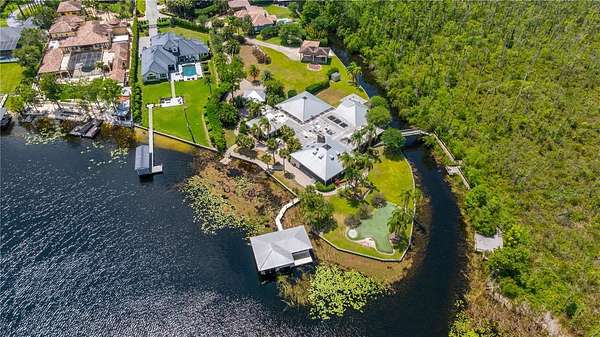 Under contract-accepting backup offers. Presenting an unparalleled opportunity to own an extraordinary property on the pristine shores of Pocket Lake. Encompassing 1.70 acres of elevated, dry land with over 1,000 feet direct water frontage, this exceptional estate offers sweeping, unobstructed views across one of the most private and picturesque lakes on the renowned Butler Chain of Lakes. From the moment you arrive, the grandeur of the setting is unmistakable panoramic vistas of crystal-clear water, where shimmering sunsets reflect off the lake each evening. This unique home consists of 4 separate living areas surrounding a central enclosed lanai featuring a pool, spa, and whimsical water features with a bridge. With direct access to the 11-lake Butler Chain, this is a boater's paradise, offering endless opportunities for water sports, fishing, or leisurely cruises past some of Central Florida's most amazing waterfront homes. With no HOA restrictions and an unmatched sense of space and privacy, this is more than just a home, it's a canvas for someone's greatest imagination. Whether remodeling the existing residence or building a brand-new custom lakefront masterpiece, the possibilities are truly endless. A rare, grandfathered boathouse enhances the property's value, providing effortless lake access and secure, private storage for your lake toys. Ideally located just minutes from A-Rated schools, all the area attractions, world-renowned golf courses, and the fine dining and entertainment of Restaurant Row, this extraordinary offering represents one of the most special lakefront parcels on the chain of lakes.