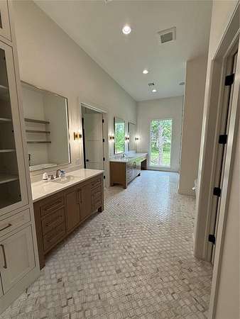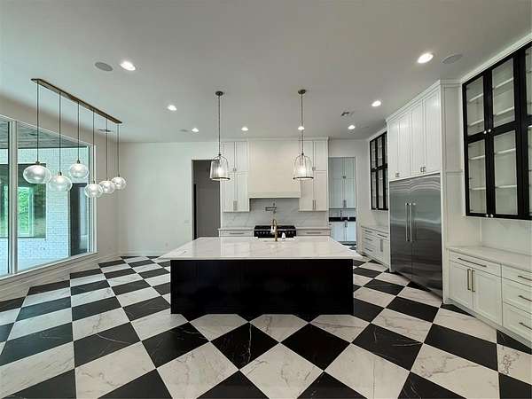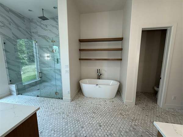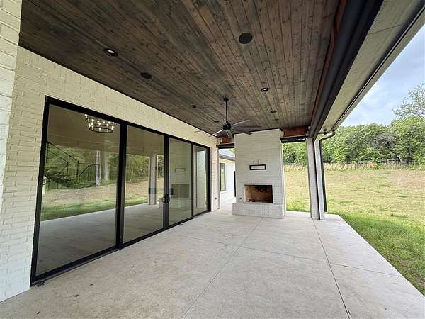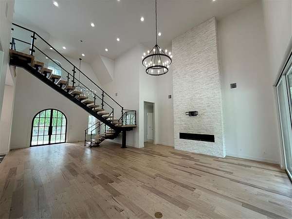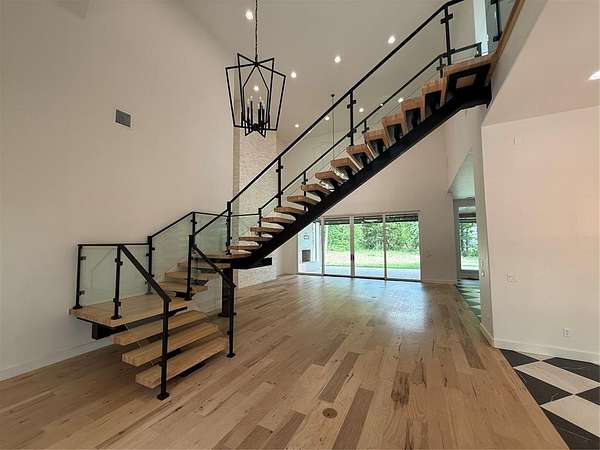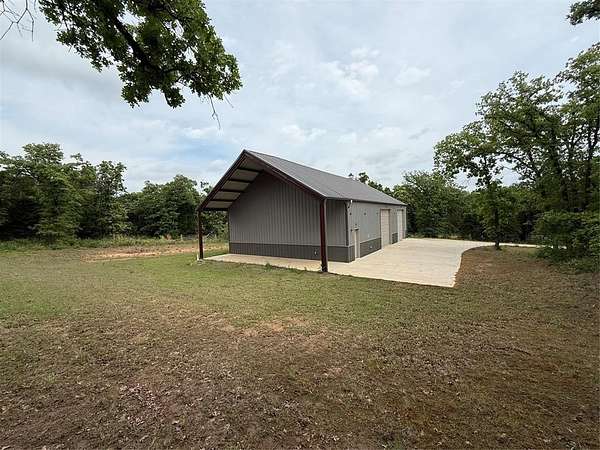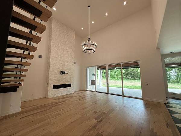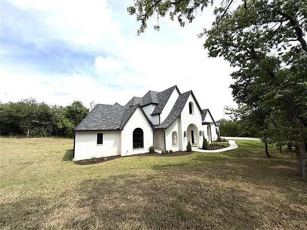 Experience refined living in Adero Reserve with this stunning 2023-built estate situated on 5 beautifully treed acres at 10301 NE 133rd in Jones, just minutes from Edmond and located in Edmond Schools. This thoughtfully designed home offers 5 bedrooms, 4 full and 2 half bathrooms, 2 living areas, 2 dining spaces, and a 4-car garage, blending luxury and functionality throughout. The interior showcases exceptional craftsmanship with white oak floors, a striking mono-stringer floating staircase, and a floor-to-ceiling stone fireplace anchoring the main living space, while the living area also features impressive 20-foot-wide glass sliding doors that seamlessly connect indoor and outdoor living. The chef's kitchen is complemented by a walk-through pantry, and Pella windows and doors bring in natural light and efficiency. A versatile fourth bedroom or office includes a private half bath and exterior access, offering flexibility for future outdoor living enhancements. Upstairs features a spacious bonus room along with the fifth bedroom and full bath, plus access to a covered balcony overlooking the serene backyard. Additional highlights include tankless hot water heaters, a whole home generator, spray foam insulation, ELAN Smart Home System, custom iron front doors, and an inviting outdoor living area with a wood-burning fireplace. The impressive 2,400 SF detached shop adds even more functionality to this exceptional property.