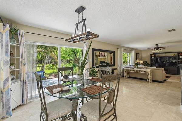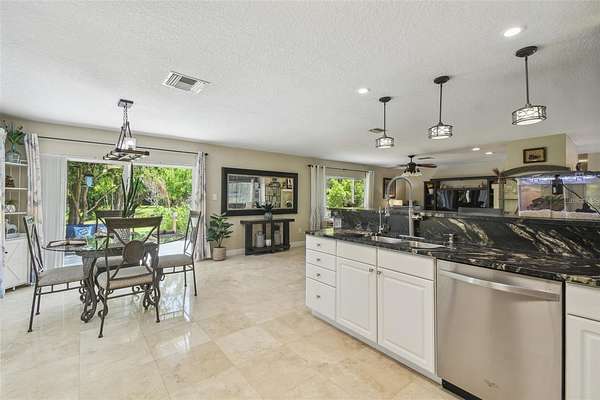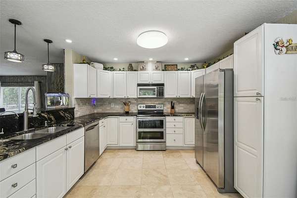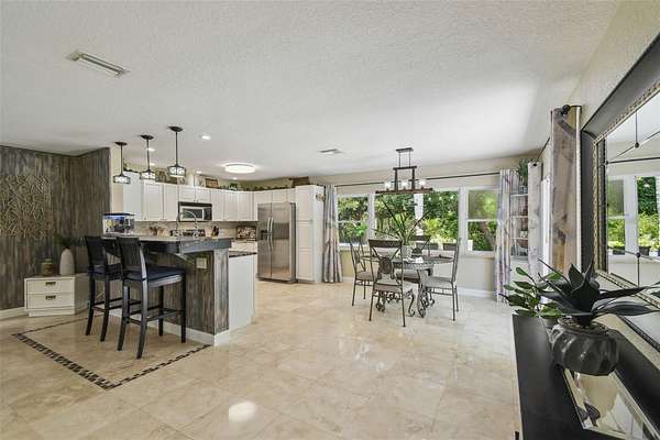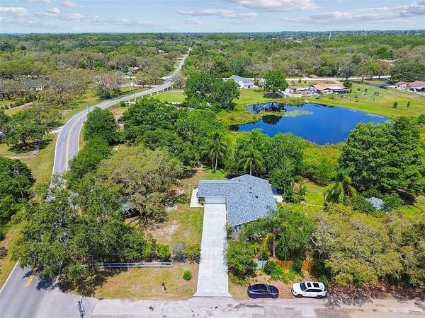 Make the move to this peaceful 2-Acre Estate in Golden Acres is ready to go! Nestled in the sought-after Golden Acres community, this upgraded 3-bedroom, 2-bathroom home offers the perfect combination of privacy, versatility, and modern comfort--with no HOA and ER zoning that permits livestock, chickens, and more. Set on a tranquil 2-acre parcel situated along a 3-acre spring fled lake, the home boasts an open-concept layout featuring travertine flooring, upgraded windows, an inside laundry room, and a fully renovated kitchen with granite countertops and updated appliances. Both bathrooms have been tastefully remodeled, and every window captures peaceful views of the surrounding green space. The 2-car garage offers outstanding usability with dual garage doors, maximizing access and functionality. Key mechanical updates include a brand-new roof (2025), A/C (2017), new well pump, and new septic drain field--providing peace of mind for years to come. A standout feature is the detached, 3-stall air-conditioned barn, complete with power and water--perfect for equestrian needs, hobby farming, or workshop use. Plus, recent zoning updates now allow for an Accessory Dwelling Unit (ADU) up to 1,200 sq ft (please verify specifics with the county). Whether you're envisioning a private homestead, multi-generational living, or simply more space to thrive, this Golden Acres gem delivers the freedom and flexibility to create your ideal lifestyle.(ROOF-2025)(A/C-2017)(W/H-1999)(WEEL PUMP-2024)(SEPTIC- DRAIN FIELD-2024)Seller pays $870 per year for flood insurance