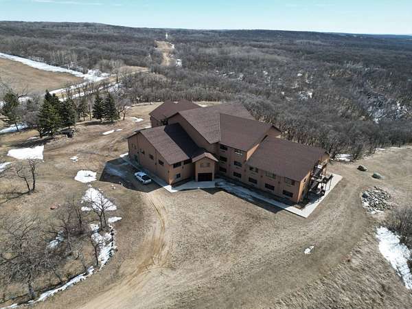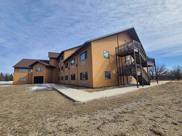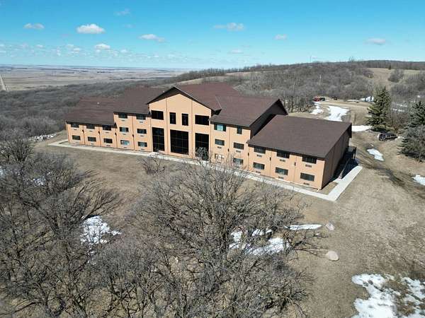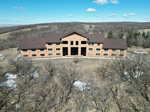 Introducing an exceptional opportunity to acquire a sprawling 43,000 sq. ft. building nestled atop one of the highest vantage points in the Turtle Mountains, just northwest of Bottineau, ND. Perched upon 16 acres of gently rolling oaks, this property boasts breathtaking panoramic views that simply must be experienced firsthand to be fully appreciated. The building, thoughtfully positioned within this picturesque landscape, is a testament to both its grandeur and potential. With its exterior adorned in enduring stucco, the structure stands as a beacon of quality craftsmanship, having weathered the elements with grace. Ascend the stunning stairways, crafted from premium materials, to explore three levels of promise and possibility. Originally conceived as a visionary concept, the layout presents an array of possibilities, featuring an inspired design that encompasses up to 60 rooms across its expansive 43,000 sq. ft. floor plan. The top level envisioned as luxurious penthouse apartments, the middle level designed for spacious living quarters, and the ground level tailored for the comfort of hotel-style accommodations. Currently, 16 meticulously finished rooms await, showcasing exquisite stone flooring and custom trim throughout, alongside individual electric/AC units for added convenience. An inviting lobby sets the stage for what is yet to come, offering a glimpse into the potential of this remarkable property. For the discerning buyer, the unfinished rooms, meticulously framed and awaiting your personal touch, present an unparalleled canvas for customization and realization of your vision. The building is equipped with its own well, with the option to connect to the local rural water system, ensuring both self-sufficiency and convenience. As you explore the possibilities, envision the culmination of this endeavor-a property poised to captivate and inspire. Stay tuned for an extensive array of photographs, a captivating drone video, and detailed floor plans, providing insight into the boundless potential that awaits. To embark on this journey of discovery, schedule your appointment today and ensure you have your pre-approval letter ready for viewing. Prepare to be enchanted as you witness the allure of this extraordinary offering, awaiting your personal touch to transform it into a truly breathtaking retreat.