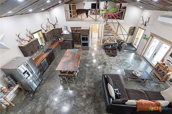 45.83+- acre property located just south of Hallettsville in the small community of Ezzell. The property consists of two homes: one a barndominium style home built in 2022 and an older home, 1970, with tremendous potential. The primary home (bardominium) is 1800 square feet (total 2850sf including loft space). The home is a 2 bedroom 2 bath home with two additional loft areas, one being currently used as a bedroom and the other a flex space with multiple uses such as a workout area, study or extra storage space. The home's main area is an open concept between the kitchen, dining and living spaces. The kitchen boasts beautiful custom cabinetry and counter tops. Eye catching, stained concrete floors lead you throughout the lower level. The large master bedroom features a double vanity ensuite. On the opposite side of the home from the master bedroom is another large bedroom which spans the width of the home as well as a sizable utility room and common full bath. The home has two covered porches with awesome country views. The second home is a 1204 square foot, 3 bedroom 1 bath, with 1 car garage which would be a phenomenal fixer upper for anyone needing the extra space. The land is mostly open but still hosts a variety of wildlife. Best suited for grazing or hay production this property is a blank slate. The property also shares a stock tank with the neighboring property and direct access to CR 1 is being worked on by the sellers. Don't miss out on your opportunity to own this country oasis.