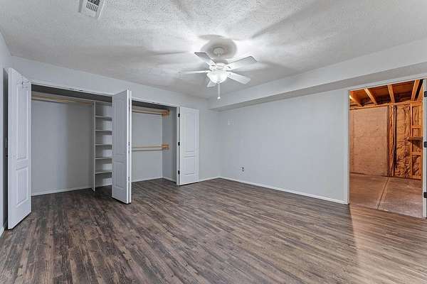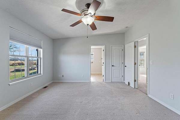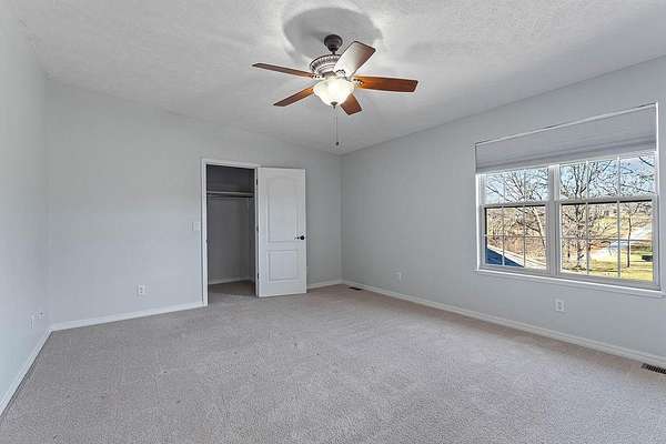 - Blinds, Ceiling Fans, Ice Maker Connection, Smoke Detector, Walk-In Closets