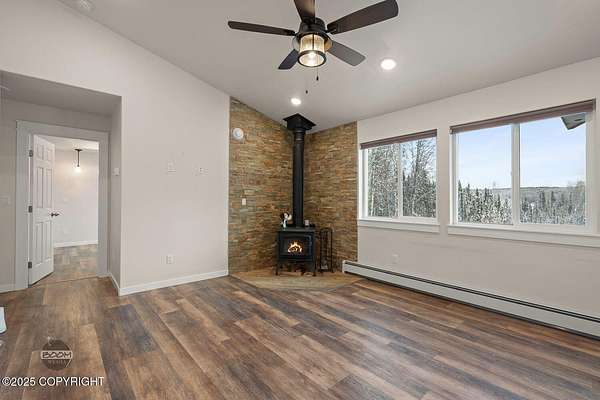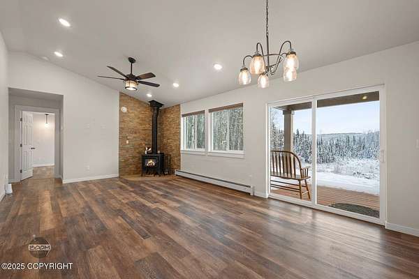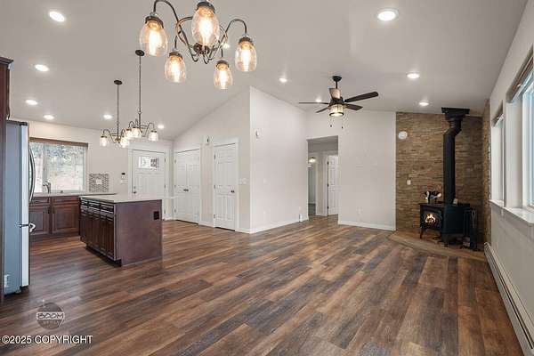 - Ceiling Fan(s), Dishwasher, Fireplace, Pantry, Quartz Counters, Refrigerator, Vaulted Ceiling(s), Window Coverings, Wood Stove