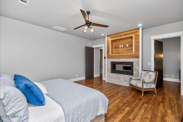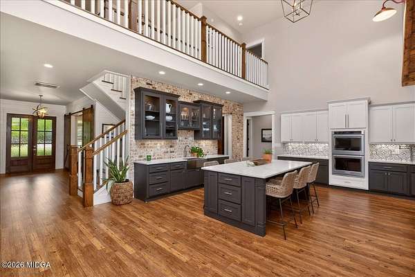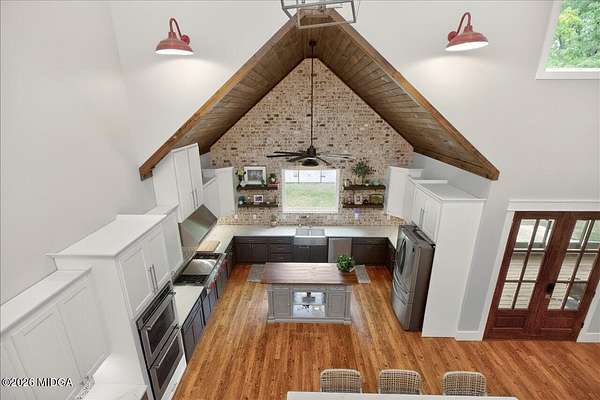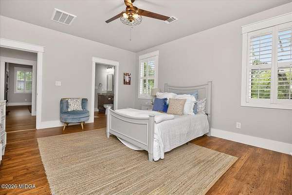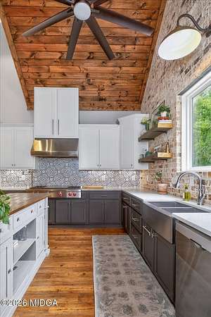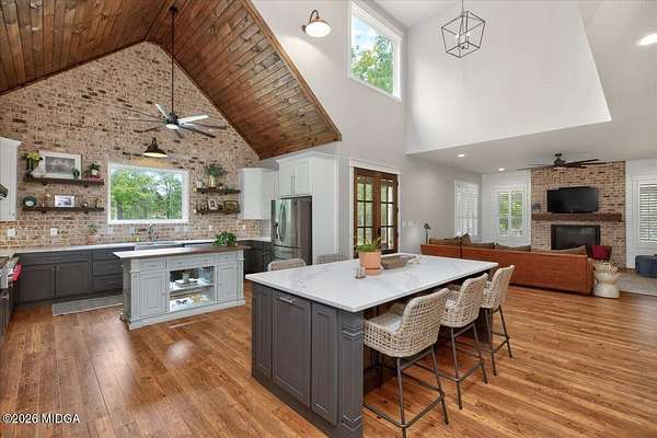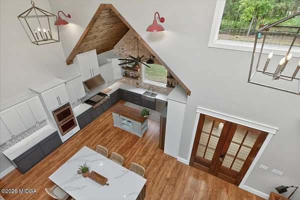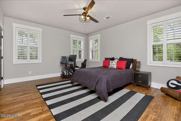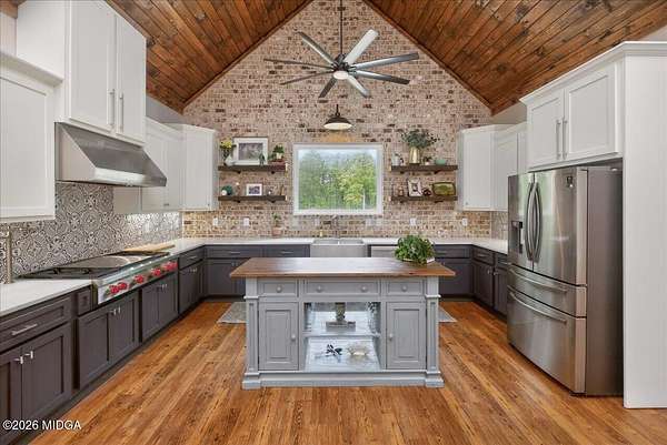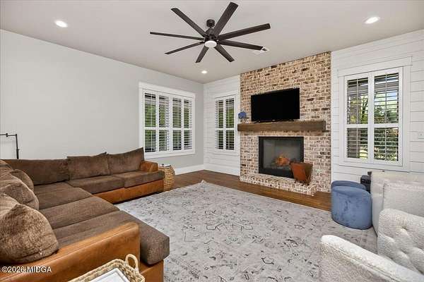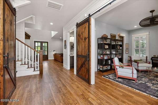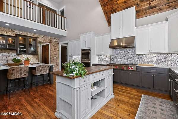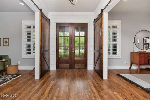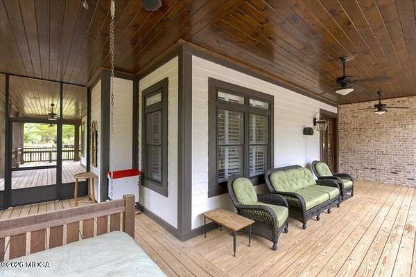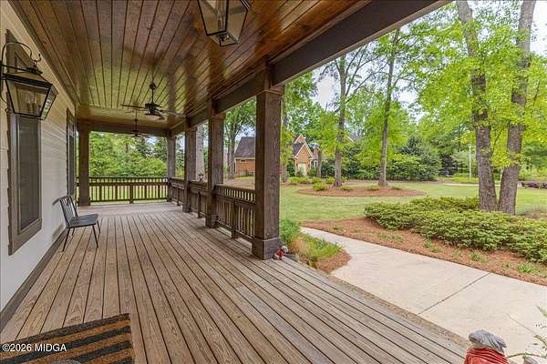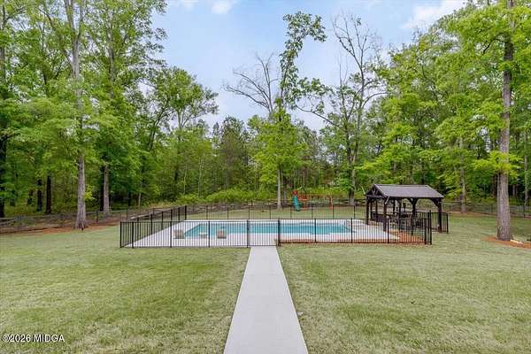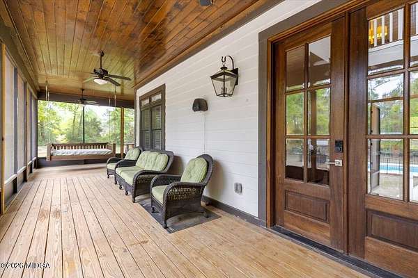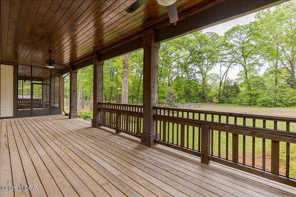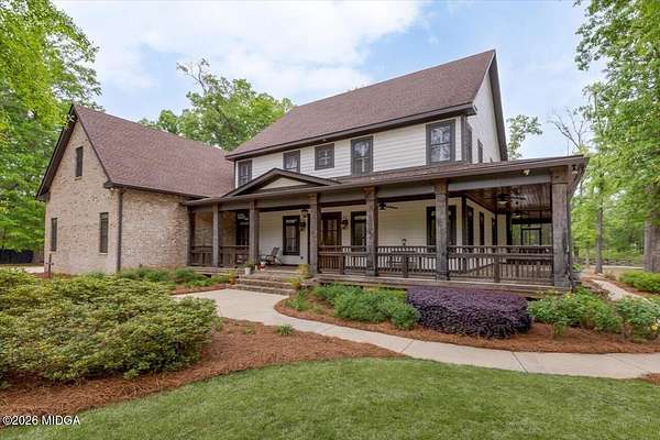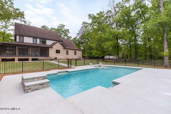 Welcome to Perrydise at 1031 Cherokee Road--your private retreat on 4.35 wooded acres. This stunning Craftsman-style custom home features a wraparound porch, an inviting screened porch in the back, and a heated gunite pool overlooking peaceful, private surroundings. Inside, enjoy a chef's kitchen with high-end appliances, gas cooktop, double ovens, two farmhouse sinks, butler's pantry, and beautiful custom finishes throughout. The main level offers a luxurious primary suite with fireplace and spa-like bath, plus a guest bedroom. Upstairs boasts a 1,200 sq ft bonus room with built-in sleeping area, wet bar, surround sound, and attic storage. Two bedrooms feature private baths, with two more sharing a Jack-and-Jill. Additional perks include a garage flex space with half bath, irrigation on well, and camper hookup. A perfect blend of luxury, space, and privacy just minutes from town.