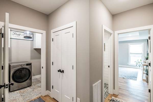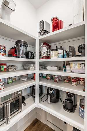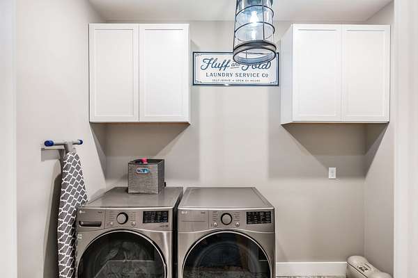 Thoughtful design elements include a small interior-access door from the garage directly into the pantry, perfect for easily unloading groceries. Additionally, a separate utility-sized garage door offers convenient access for storing lawn equipment, mowers, and outdoor tools.