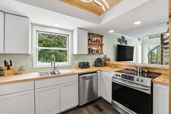 Welcome to 1031 Paradise Camp Rd - Where quiet country living meets laid-back lake life in the best way possible. Tucked away on 2+/- secluded acres, this property offers the privacy, space and freedom you've been craving, while being within walking distance to Herrington Lake - a rare and unbeatable combination. Inside, soaring ceilings and expansive windows flood the home with natural light, creating an airy, inviting atmosphere that feels both warm and refreshing. Whether you're entertaining or unwinding, the layout is designed to enjoy every moment. Step outside and it truly shines. A wrap-around porch, fire pit and generous outdoor space make this home a gathering place for friends, family and unforgettable lake nights. Upstairs, you'll find two bedrooms, including a primary with its own private deck - the perfect spot for slow mornings, coffee and peaceful views. Whether you're a lake lover, hunter or someone searching for a private retreat, this home offers a lifestyle that blends adventure, relaxation and natural beauty - all in one unforgettable setting.