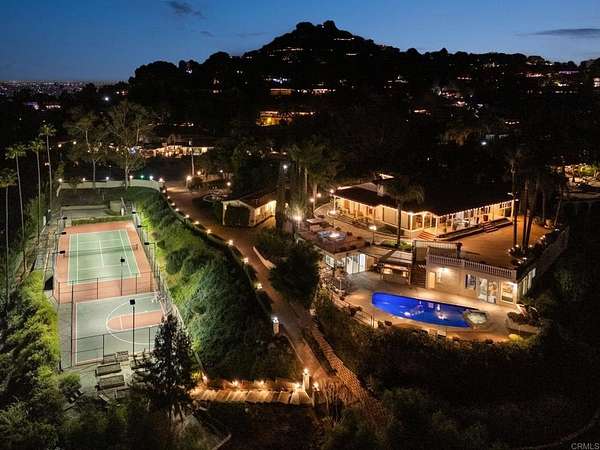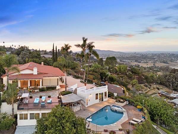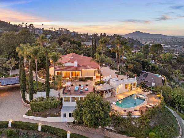 Exquisite and Luxurious Mount Helix Retreat: Set on 1.74 acres across two parcels with panoramic views, this estate offers unmatched luxury with a 4,520 sqft residence boasting 4 bedrooms, 5.5 bathrooms, a detached 2 bed, 1 bath, 950sqft guest house, a saltwater pool, 51 owned solar panels, a private well for landscaping, and dual gated entrances. Enjoy resort-style living with a tennis court, basketball court, and unparalleled privacy in this one-of-a-kind property. (10310 Fuerte Dr. and 10308 Bonnie Ln) The property boasts panoramic views of San Diego's valleys, mountains, and sparkling city lights. This stunning home features large, light-filled bedrooms, each with its own private en suite bathroom, ensuring ultimate comfort for family and guests. The heart of the home is the expansive chef's kitchen, a culinary dream equipped with a Sub-Zero refrigerator, Viking range, Decor Double ovens, and custom maple cabinetry. A spacious granite island and open layout make it ideal for entertaining. What makes this property truly unique is its thoughtful upgrades and exceptional amenities. Unlike many homes in the area, it is connected to the sewer system, and it features a private 5,000-gallon well that supplies water for the beautifully landscaped grounds, including fruit trees, lush plants, serene water features, and garden planters for growing your own fresh produce. The home also includes a whole-house water softener and filtration system, ensuring premium water quality throughout. Outdoors, this home is designed for both relaxation and recreation, offering a saltwater pool, spa, and built-in BBQ area, perfect for entertaining. Sports enthusiasts will love the Olympic-sized tennis court and half-basketball court. Additionally, the property includes a self-contained guest house with a kitchen and full bath, making it ideal for guests. Just minutes away from charming downtown La Mesa Village, offering boutique shops, local eateries, and coffee spots. Quick access to major freeways, making downtown San Diego, beaches, and the airport easily accessible. This is truly a resort-style home, providing everything you need in one stunning, private estate.