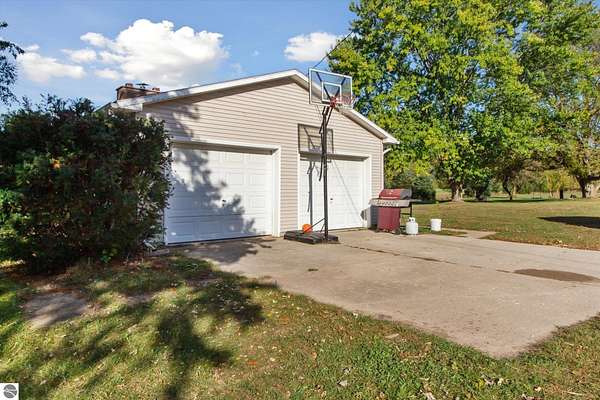 Beautiful 3-bedroom, 1-bath home sitting on just over 11 acres, only 10 minutes from the town of Alma. This property offers the perfect mix of comfort, privacy, and outdoor lifestyle. Inside, you'll find a beautiful kitchen with granite counter tops and stainless-steel appliances. A beautiful 4 seasons room looking out into the large backyard. A spacious Living room with a beautiful woodburning fireplace with a beautiful wood mantel, an open and inviting floor plan. You need more room..you'll find another 1272 square feet in the partially finished basement with a partially finished 2nd bath. Outside, the land is a dream for anyone who loves the outdoors, with plenty of space to roam and proven hunting opportunities with big bucks right out your back door literally. An attached 2 car garage and a large pole barn for extra storage for vehicles or toys. Whether you're looking for a private country setting, hunting grounds, or simply more room to spread out while staying close to the city, this property checks all the boxes! There is only an acre that's between the 11.11 acres and the Fred Meijer Heartland Trail!