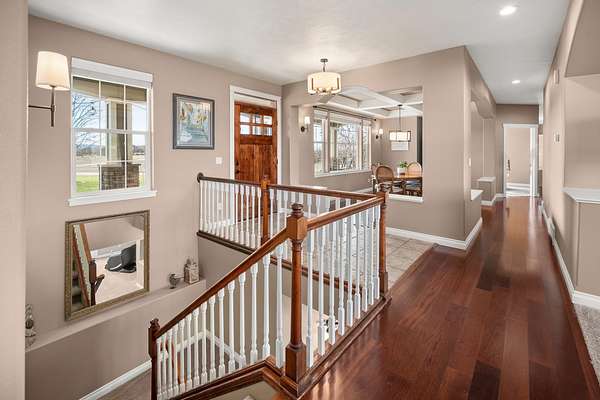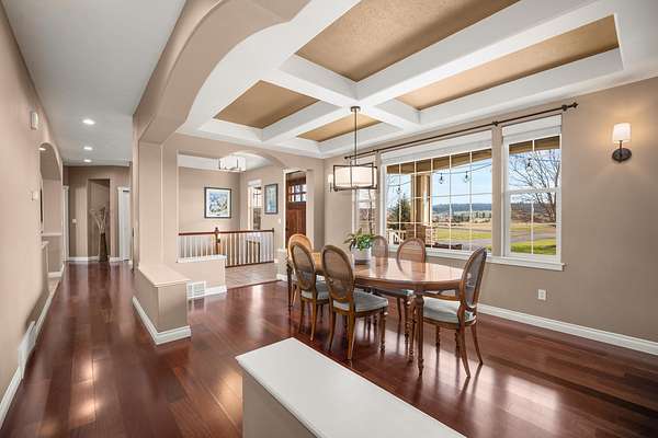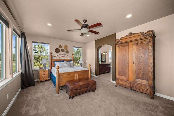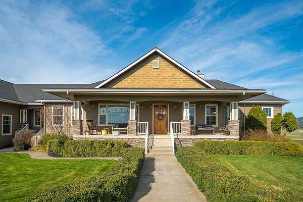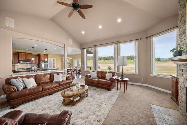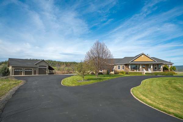 Experience elevated country living in this beautiful home located in the gated Peone Landing Community. This custom 2007 daylight walkout rancher has sweeping views in every direction. The property is located 3 miles from the highly rated Mt Spokane High School, & less than 10 miles from Mt Spokane State Park, where you will have access to winter sports & miles of hiking & biking trails. Vaulted ceilings in the living room & oversized windows fill the room with bright natural light. The kitchen features a large island, granite countertops, double ovens, stainless steel appliances, & pantry. Outside the kitchen, you'll find a large partially covered deck. Enjoy the large main-level master bedroom, ensuite bath w/abundant natural light, & a walk-in closet. On the main level, you'll find a mud room, 2 offices, & 2 half baths. The other 4 bedrooms & 2 full baths are in the basement. Here, you can also find a dedicated theater room, a family room with a pellet stove, & a study room with built-in desks & shelving.