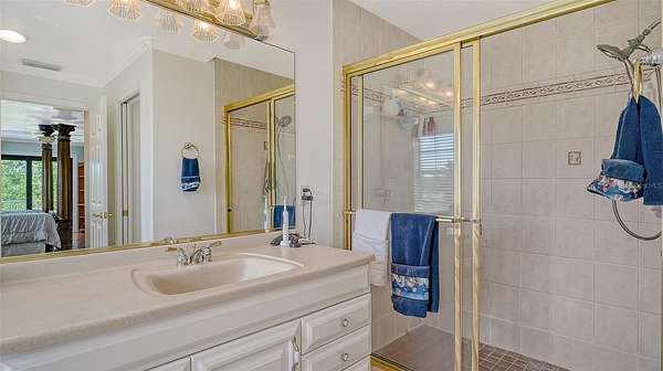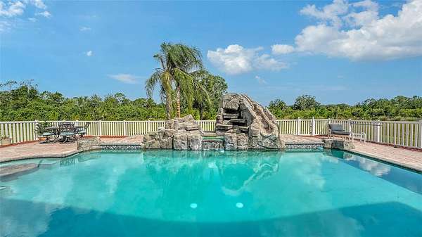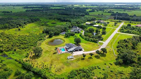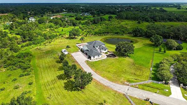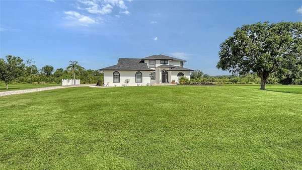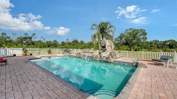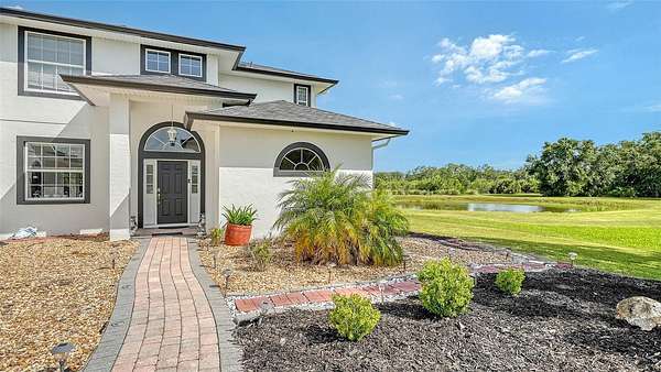 Welcome to Saddle Oak Estates, one of Sarasota's most prestigious gated Equestrian communities, where privacy, space and serenity come together. Tucked away on 7.56 acres, at the end of a peaceful cul-de-sac, this exceptional 5 bedroom, 3.5 bath estate offers the perfect blend of luxury and country charm. Inside, you find two expansive primary suites - one upstairs, one downstairs - each with spa like baths featuring jacuzzi tubs, providing ultimate flexibility and privacy for multigenerational living or guest accommodations. A personal movie theatre with stadium seating sets the stage for unforgettable nights of entertainment, while the soaring ceilings in the living room and elegant crown molding in the formal dining room add timeless sophistication. The kitchen offers clean lines, generous counter space, and tranquil views of the outdoors. Enjoy year-round Florida living in the glass-enclosed lanai with dual triple sliders and paver flooring - an inviting transition to the spectacular outdoor living area. Step outside to your own private resort. An expansive 15,000 square foot paver patio wraps around a stunning heated pool, custom boulder-accented spa and water feature. Beyond is a tranquil pond stocked with fish and enhanced by a bubbling fountain. Need shade? Simply extend the retractable sunshade awning for comfort. Additional features include a Brand NEW 2024 roof, triple zone A/C system, water treatment system, 4 car garage and fencing on 3 sides. Whether you are looking for a quiet retreat or a dynamic lifestyle property, this estate offers unparalleled space, comfort and location. This is where luxury meets laid back country living!