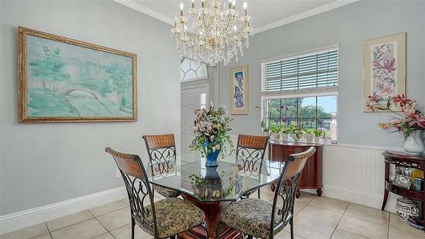 - Ceiling Fans(s), Chair Rail, Crown Molding, Eat-In Kitchen, High Ceilings, Primary Bedroom Main Floor, Solid Surface Counters, Walk-In Closet(s), Window Treatments