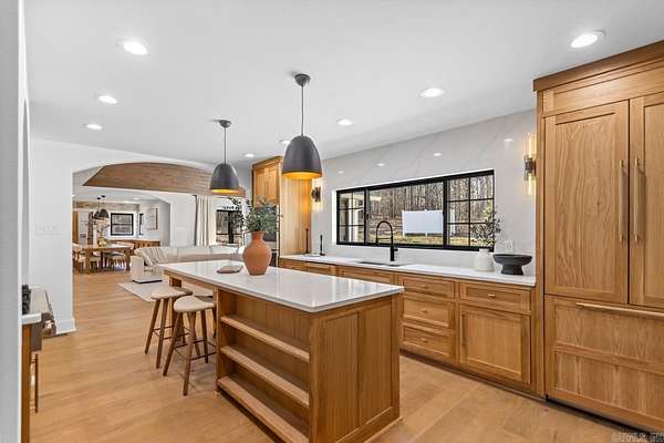 Look at this stunning, Tuscan inspired home sitting on 3.44 acres! From the moment you enter the front door you will quickly realize that this home is special and full of custom, high end touches that perfectly blend modern amenities with old world charm! This 6 bedroom 4 bath home is perfect for a large family and with 2 of those bedrooms having their very own living room, dining area, bathroom and kitchen it is also a great option for multi generational families. In addition to the 6 bedrooms you will find a upstairs bonus room, massive laundry room and a elegant office conveniently located off of the primary bedroom. The primary suite is truly a retreat with its own walk out deck, elongated fireplace, large walk in closet, bathroom complete with a huge walk in shower, large soaking tub and bidet toilet. The kitchen in this home is simply amazing and features beautiful white oak cabinetry with cabinet front dishwasher and refrigerator, quartz countertops and backsplash along with a large pantry with antique doors. Parking and storage isn't a issue with the oversized garage and updated shop!