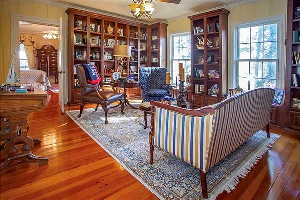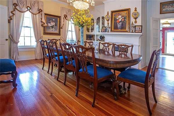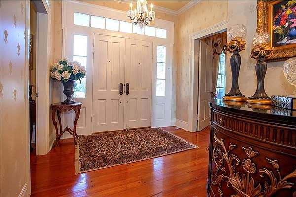 The minute you start down the narrow, tree-lined lane w/ immaculate pastures stretching off to your right--the anticipation builds. You just know that something remarkable is waiting at the end. And then, there it is...A 2 story Colonial home rising proudly in the distance. The wonder only deepens as you take in the Southern-columned front porch and balcony, the gleam of solid oak floors, the cherry-paneled den crafted at the turn of the century--every corner whispering a story. Set on 335 acres, this property offers an unmatched blend of history and modern functionality. The 4,447sq ft home anchors the estate with timeless elegance, while the guest house provides lodging for family & friends. The farm includes 2 detached, heated & cooled, 3-car shop/garages, perfect for equipment, hobbies, or storage, as well as a barn with tac room & office. There's also a vintage log cabin placed on the property like a scene from a storybook--ideal for a studio or office. Fenced pastures & open skies surround you in every direction