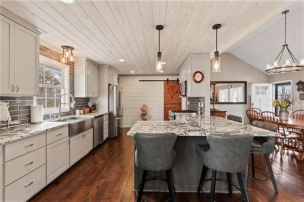 Welcome to this stunning 4-bedroom, 3 full bath home nestled on 4.48 beautiful acres along a paved highway-offering the perfect blend of convenience and peaceful country charm. With breathtaking views, a cozy fireplace, a 60x40 pole barn, and room to roam, this property truly has it all. Since November 2020, the current owners have thoughtfully upgraded and enhanced nearly every aspect of the home. Improvements include a new roof on the house and new peak & gutters on the barn, a fully finished walkout basement, 12 inches of blown insulation has been added for energy efficiency, and a new high-efficiency furnace with UV light. A separate furnace was also added to the impressive 30x40 garage, making it a perfect year-round workspace. Outdoor features shine just as brightly. The pond has been repacked and freshly dug out, and the exterior has been freshly painted with decks beautifully re-stained-creating picture-perfect curb appeal. Inside, you'll find a new stove and refrigerator, added water softener and purifier, carpet in the bedrooms was replaced with hardwood floors to match existing Amish style flooring. A new storm door completes the long list of thoughtful updates. This one-in-a-thousand property offers modern updates, timeless character, and peaceful country views that feel like they belong on the cover of Country Living magazine.