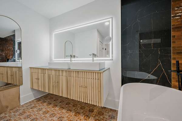 The main level has a dedicated family room w/ fireplace, formal dining room w/ wet bar, open-concept kitchen w/ access to outdoor dining, dog-wash station, full-size living room, & 2 private guest bedrooms flanking a cozy sitting room. The luxurious primary suite boasts access to 2 back patios, twin walk-in closets, & a glorious en-suite bath.