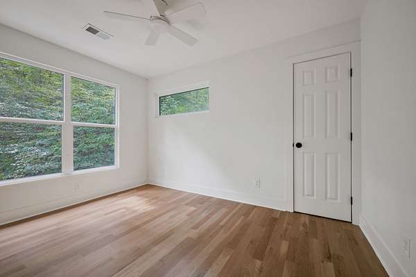 Upstairs, windows of different sizes & styles decorate every exterior wall, inviting you to look out & enjoy the verdant paradise beyond. There is a custom bathroom, laundry room, & 2 bedrooms on this level.