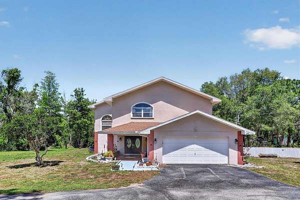 Charming 4-Bedroom Pool Home on 4.30 Acres with Detached 1,821 Sq Ft Garage/Workshop, New Water Heater, No HOA/CDD & Zoned Agricultural! Experience the best of Florida country living in this beautifully updated 4-bedroom, 2.5-bath pool home nestled on 4.30 acres of private, landscaped land. Inside, enjoy an open, spacious layout with a modern kitchen and plenty of room for everyday living and entertaining. Step outside to your screened-in pool and outdoor area—perfect for year-round gatherings. The property features mature fruit trees and wide-open space to roam, garden, or relax. What makes this property truly special is the detached 1,821 sq ft garage/workshop with electricity, ideal for car collectors, hobbyists, small business owners, or serious storage needs. An attached 2-car garage adds everyday convenience. Zoned agricultural with no deed restrictions, you're free to bring your horses, chickens, RV, boat, and all your toys. Whether you're looking to start a mini homestead or just want space to spread out, this is the lifestyle upgrade you’ve been waiting for. With no HOA or CDD fees, enjoy total freedom in a peaceful setting—just a short drive to schools, shopping and dining. Conveniently located near: Hudson Beach/Sam's Beach Bar – 11 minutes, SunWest Park – 7 minutes, Weeki Wachee Springs – 17 minutes, Werner-Boyce Salt Springs State Park - 15 minutes, Tarpon Springs – 40 minutes and Tampa International Airport - 50 minutes. Don’t miss this unique opportunity to own a one-of-a-kind property that offers space, freedom, and the lifestyle you’ve been dreaming of.