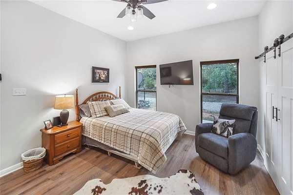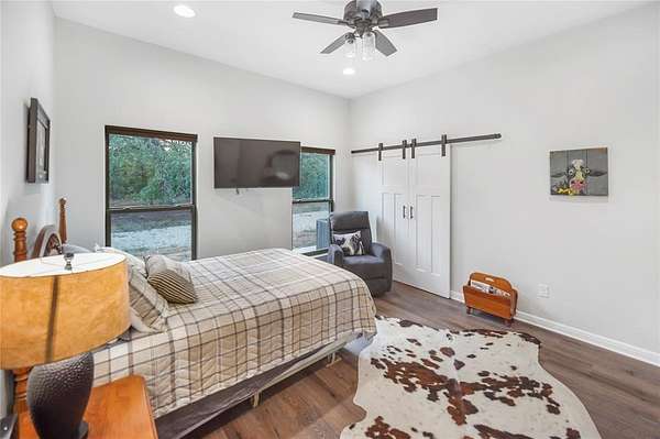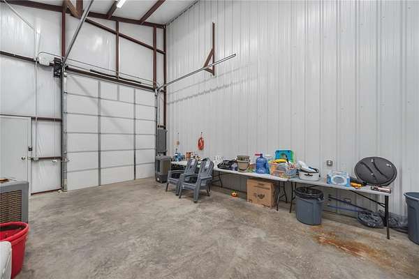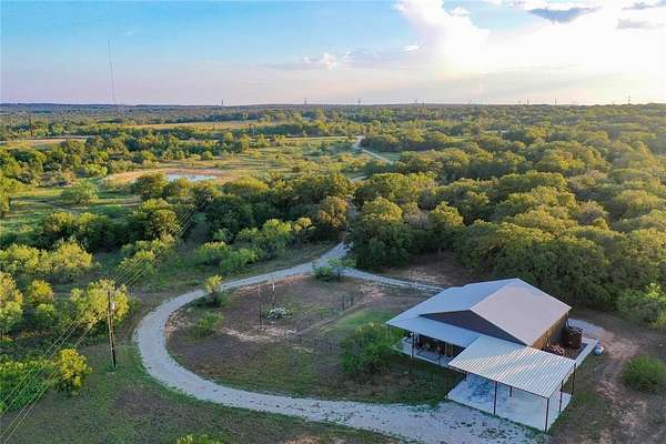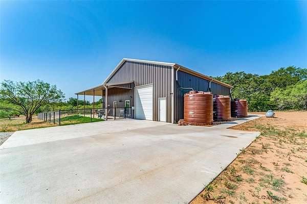 1,500 SF Barndominium on 51.16 acres that includes a master bedroom and attached bath with walk-in closet, tiled shower, and double vanity. 10' foot ceilings. Residence also includes a guest room, guest full bath, open living room, dining room and kitchen. There is also another restroom, utility room and 1,000 SF of insulated shop space with drive-thru capability. The residence has a rain collection system in place that has three (3) 4,000-gallon storage tank. The barndominium was completed mid-2023. The barndominium was constructed to allow for an additional 750 SF of living space to be above the main living space. Just one hour from downtown Fort Worth.
