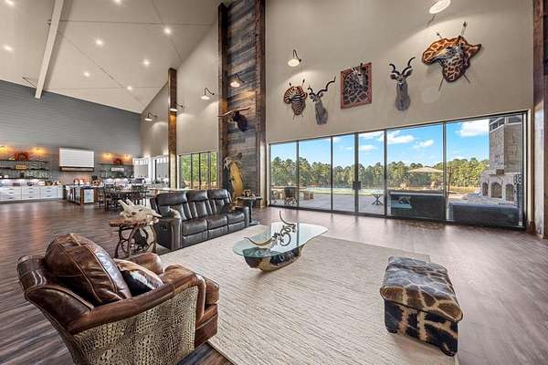 Lake Springs Ranch is the epitome of a true East Texas live-water ranch. The property has 2 main creeks, several seep-springs, a 10 acre spring-fed lake, 13,116 sqft luxury home with an infinity edge pool, fully high-fenced with exotics, and a perfectly balanced landscape with open pasture for grazing and densely wooded areas for cover. The ranch is high fenced, with Axis Deer, Oryx, Gemsbok, Fallow, Blackbuck, Rhea, and Whitetail Deer with superior genetics. The property is located just 25 minutes back to Tyler, 1.5 hours to Dallas, 3.5 hours to Houston, and 2.5 hours to Waco, and 4 hours to Austin. Home & Improvements: The home is 13,116 sqft, with 6 bd, 6.5 ba, a movie theatre, gym, full bar, and a walk-in freezer. The kitchen is equipped with high-quality appliances, a large pantry, and a stunning granite countertop as the centerpiece of the kitchen area. The backyard area comes equipped with an infinity-edge pool, hot tub, outdoor kitchen area, grill, outdoor furniture. Set just below the pool is a phenomenal 10-acre spring-fed lake with a fishing dock, stocked with trophy bass. Water: Caney Creek + another spring-fed creek flow through the property and feed into the 10-acre lake. There are numerous seeps and springs that start on the property and flow into the two main creeks. The property also has some smaller ponds for cattle near the pastures. The water source for the home is supplied by West Gregg Water. Wildlife: 50 Whitetail deer with superior genetics, 60 Axis Deer, 50 Blackbuck, 6 Fallow Deer, 6 Oryx, 1 Gemsbok, 2 Rhea + native species like Duck, Beaver, and various bird species native to the East Texas Region. Cattle: The current owner has a premier longhorn breeding operation, equipped with 7 cross-fenced pastures, hay fields, water lines run into the pastures, working pens, and a large metal barn with a shop + an area for equipment & vehicle storage.