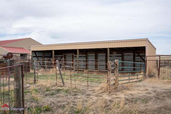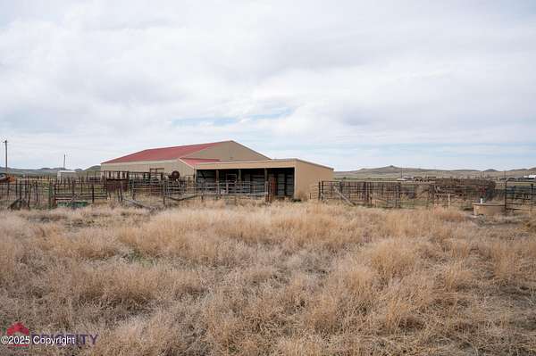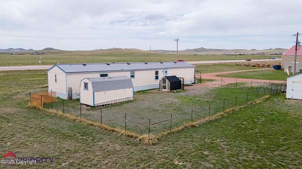Wyoming needs more cowboys and those cowboys need this barn! A whopping 8,568 sf of shop/barn space with partial concrete floors and 2 attached, enclosed lean-to's leading out to the corrals. There's an additional open lean-to for a combined 1,680 sf of shelter. Land is flat and there's no zoning! Home is a 1997 original location manufactured home in great condition. It has 3 bedrooms, 2 bathrooms and recently had the roof, windows, siding and skirting all replaced! Central A/C, storage sheds and great access off Hwy 59! Call/Text for more info!